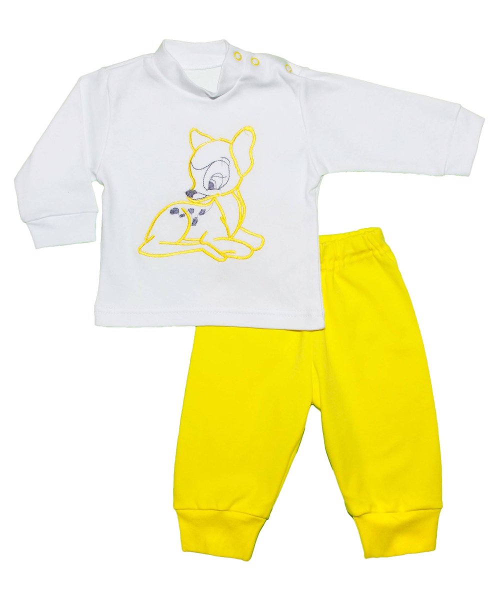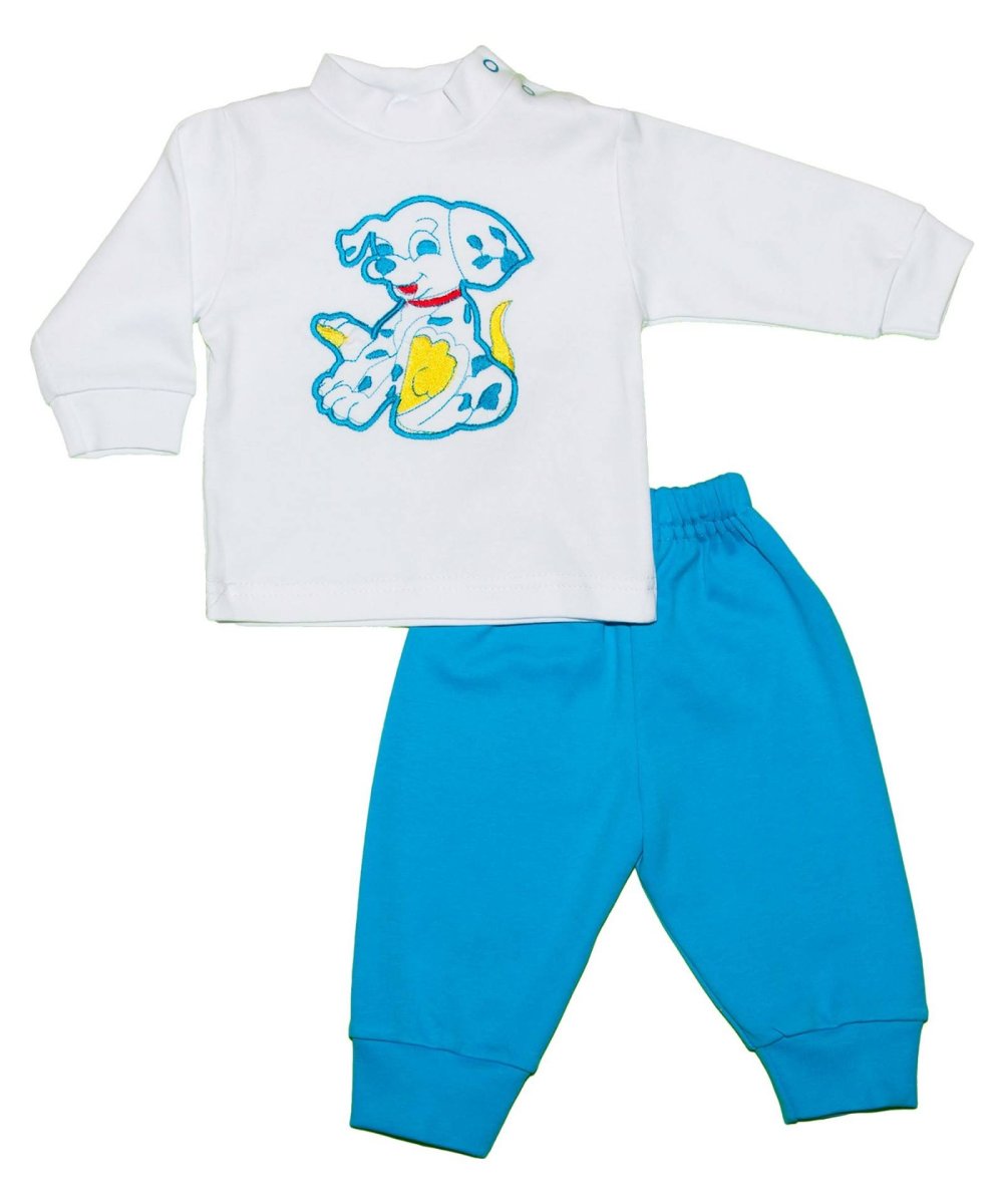 Комплект для мальчика. Очень нежный и интересный комплектик с красивой вышивочкой станет вашим фаворитом, ведь в него, невозможно не влюбится. Брючки с манжетами по ножкам очень удобная деталь, закрепив штанины манжетами, добиваемся того, что при движении ваш малыш не запутается и не упадёт. Цветные однотонные брюки очень красиво смотрятся с белой водолазкой, на которой по переду вышита аккуратная и милая вышивка максимально подходящая к цвету брюк. Застёжка на кнопках станет удобным дополнением к водолазке. Комплект до воли такой интересный и привлекает к себе внимание.