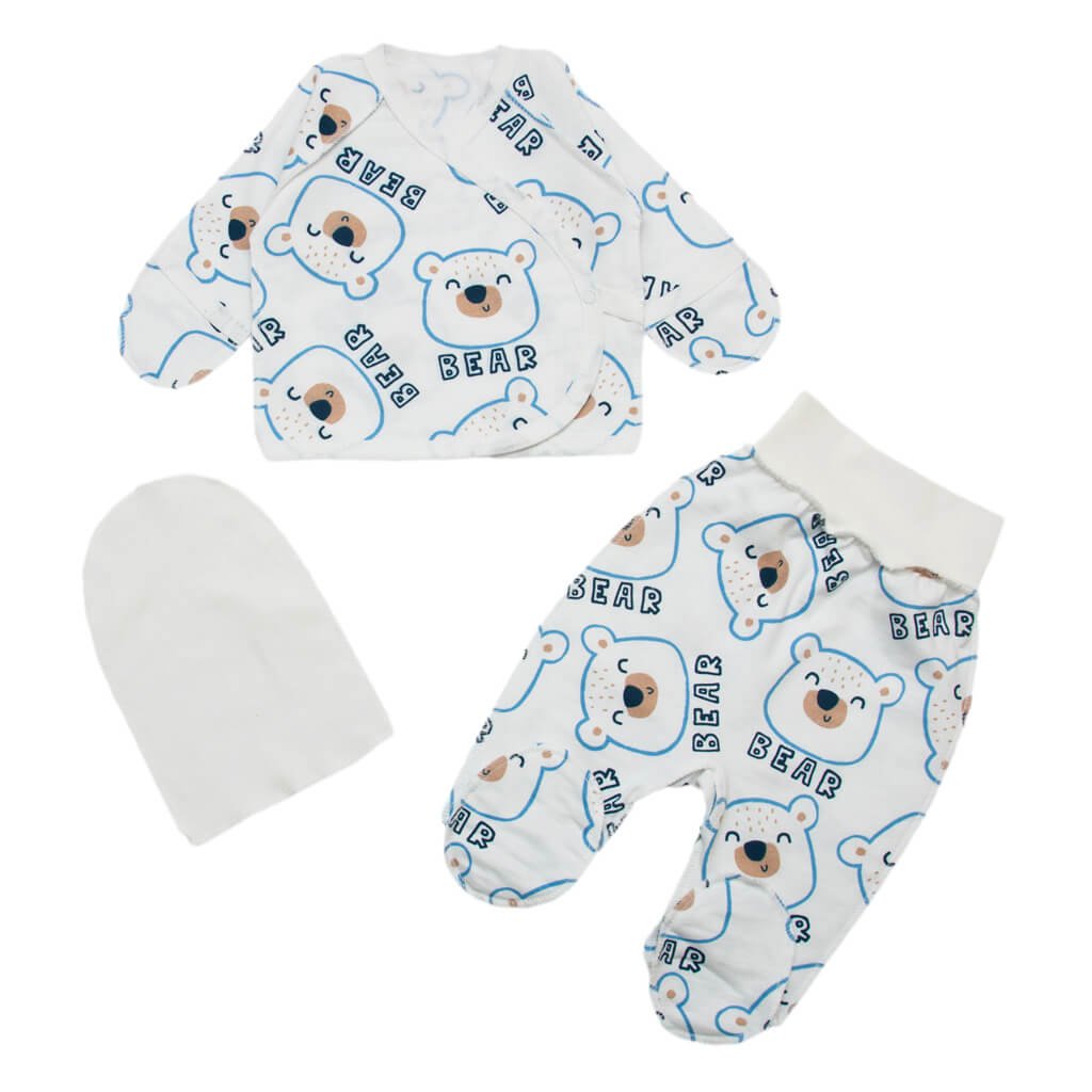 Представленный детский комплект молочного цвета с принтом мишки из мягкого полотна с начёсом станет идеальным выбором для холодного времени года. В комплект входят распашонка, ползунки и шапочка, создавая полный образ для малыша и обеспечивая ему комфорт. Полотно с начёсом делает вещи приятными на ощупь и тёплыми, что особенно важно для чувствительной детской кожи. Распашонка имеет удобные застёжки, которые позволяют легко и быстро переодеть ребёнка. Ползунки не стесняют движения, давая малышу возможность свободно двигаться. Шапочка плотно прилегает к голове, защищая её от холода и сохраняя тепло. Комплект представлен в различных расцветках с милыми рисунками.