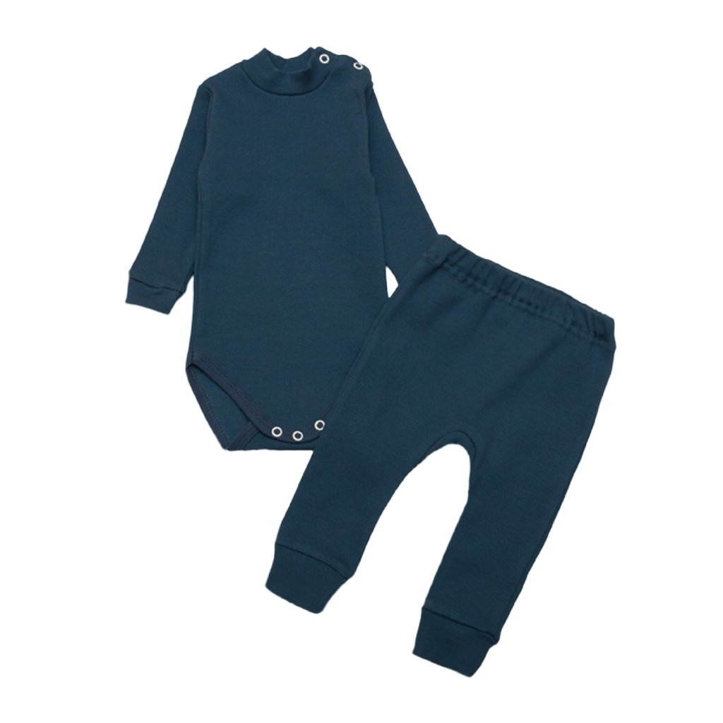 Вдохновлённый уютом и простотой - этот детский комплект сочетает в себе комфорт и практичность, которые так важны в одежде для малышей. Он выполнен из мягкого полотна рубчик цвета индиго, известного своей эластичностью и приятной фактурой. Комплект включает однотонный боди-гольф с горловиной-стойкой, которая надёжно защищает шею от ветра, и удобные штанишки на мягкой резинке. Боди оснащён кнопками внизу и возле горловины для быстрого переодевания. Такой набор подойдёт как для дома, так и для прогулок, а разнообразие расцветок поможет выбрать вариант на любой вкус.