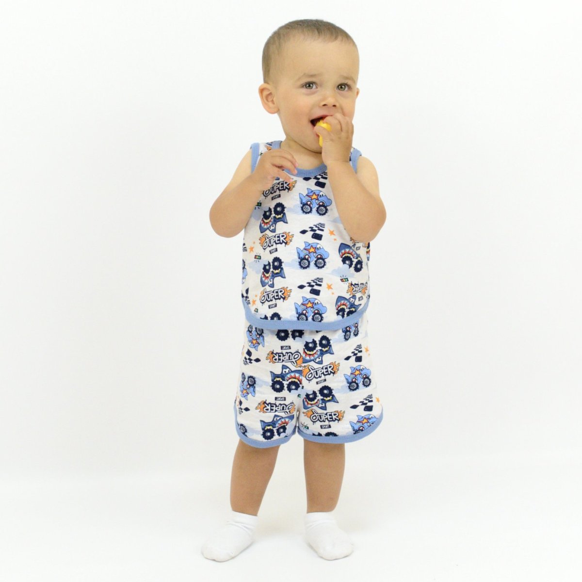 Когда в детской одежде сочетаются удобство, практичность и стиль - это идеальный вариант на каждый день. Комплект для мальчика из мягкого и дышащего полотна кулир пенье станет отличным выбором как для дома, так и для прогулок в теплую погоду. В набор входит майка и шорты, украшенные яркими детскими рисунками машинок, которые поднимают настроение. Особое внимание заслуживает бейка по краям изделия - она аккуратно выделяется и добавляет аккуратности всему комплекту. Благодаря свободному крою одежда не сковывает движений, а натуральная ткань бережно касается кожи, не вызывая раздражений.