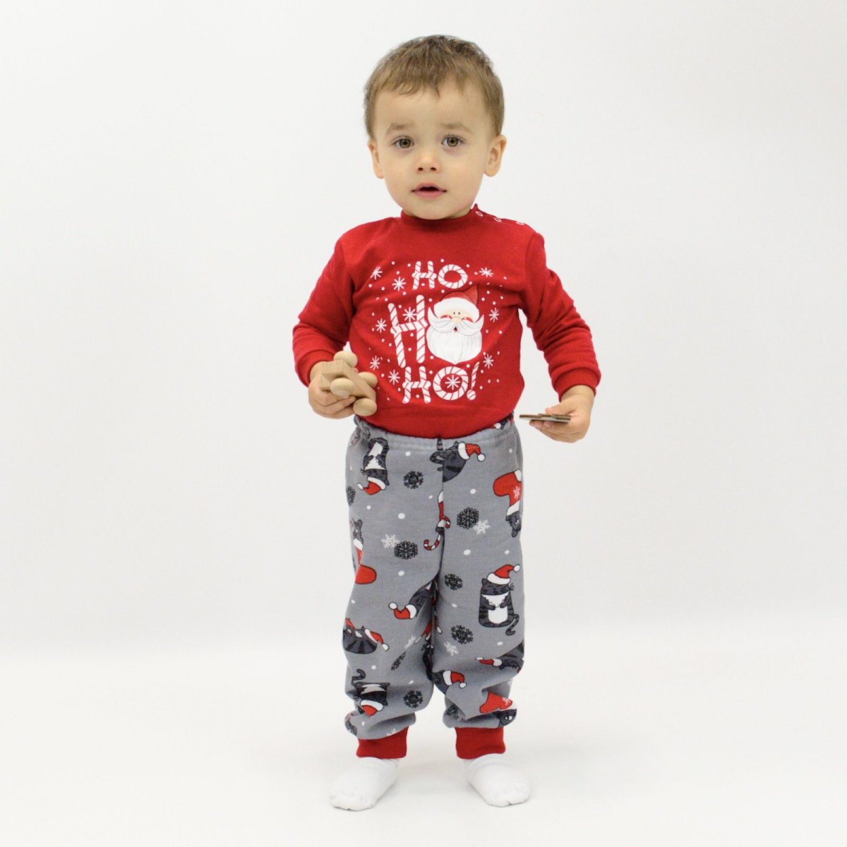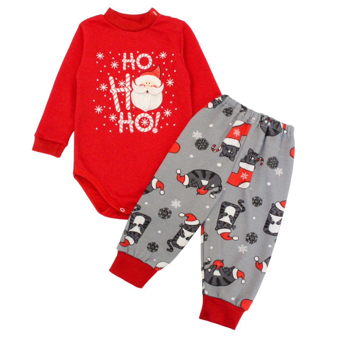 Каждый малыш ждёт новогоднего чуда! И с наступлением зимних праздников наш интернет-магазин «Арлекин» подготовил невероятные новинки для своих маленьких клиентов. Детский комплект, красного цвета с принтом Санты. Боди и штанишки пошиты из высококачественного трикотажного начеса. Бодик изготовлен из однотонного полотна, а посередине передней части изделия разместилась красивая покраска. Также на боди присутствуют кнопочки, которые расположены возле горловины и между ножек. Штанишки серого цвета изготовлены из качественной ткани с рисунками. Скорее порадуйте своего карапуза новыми вещичками!