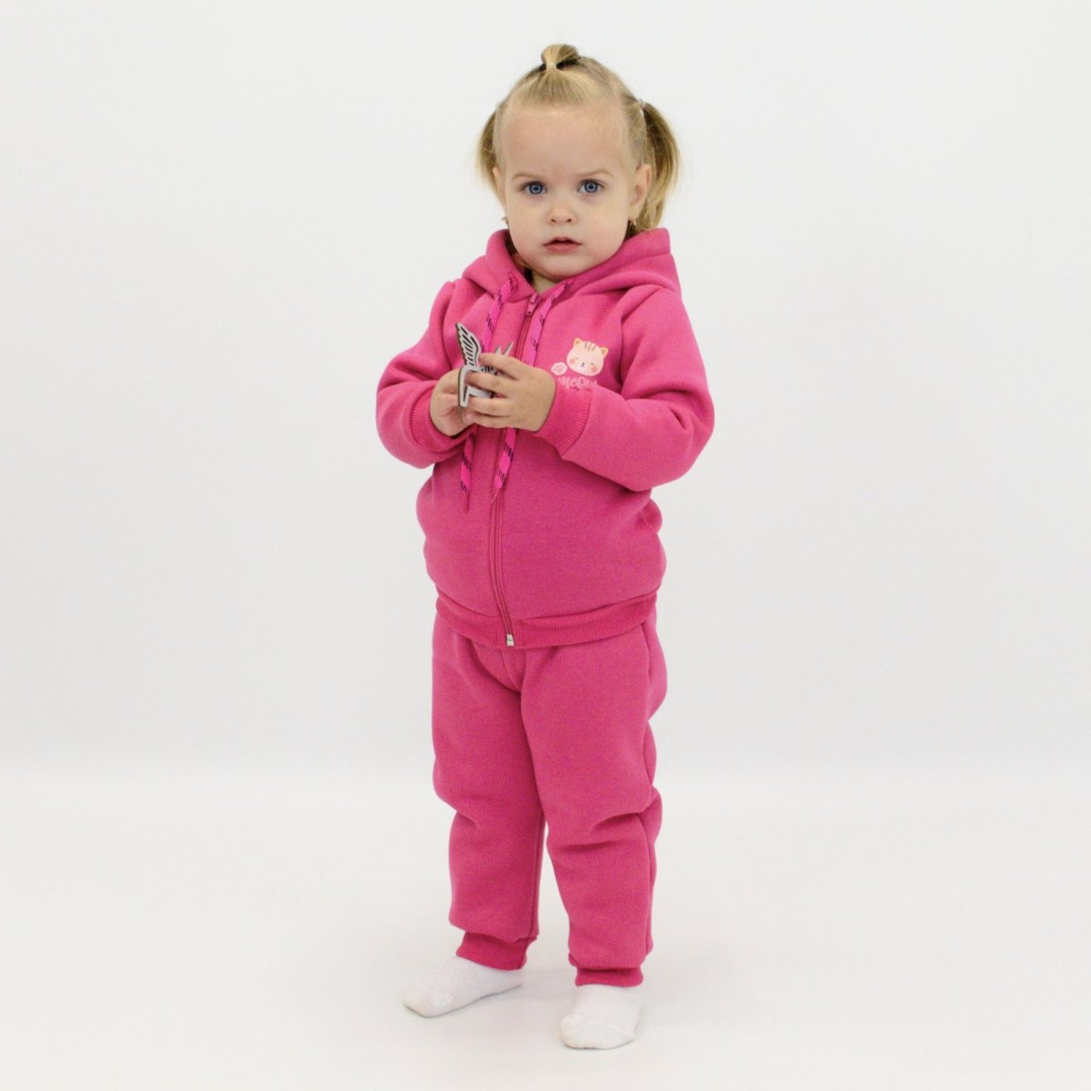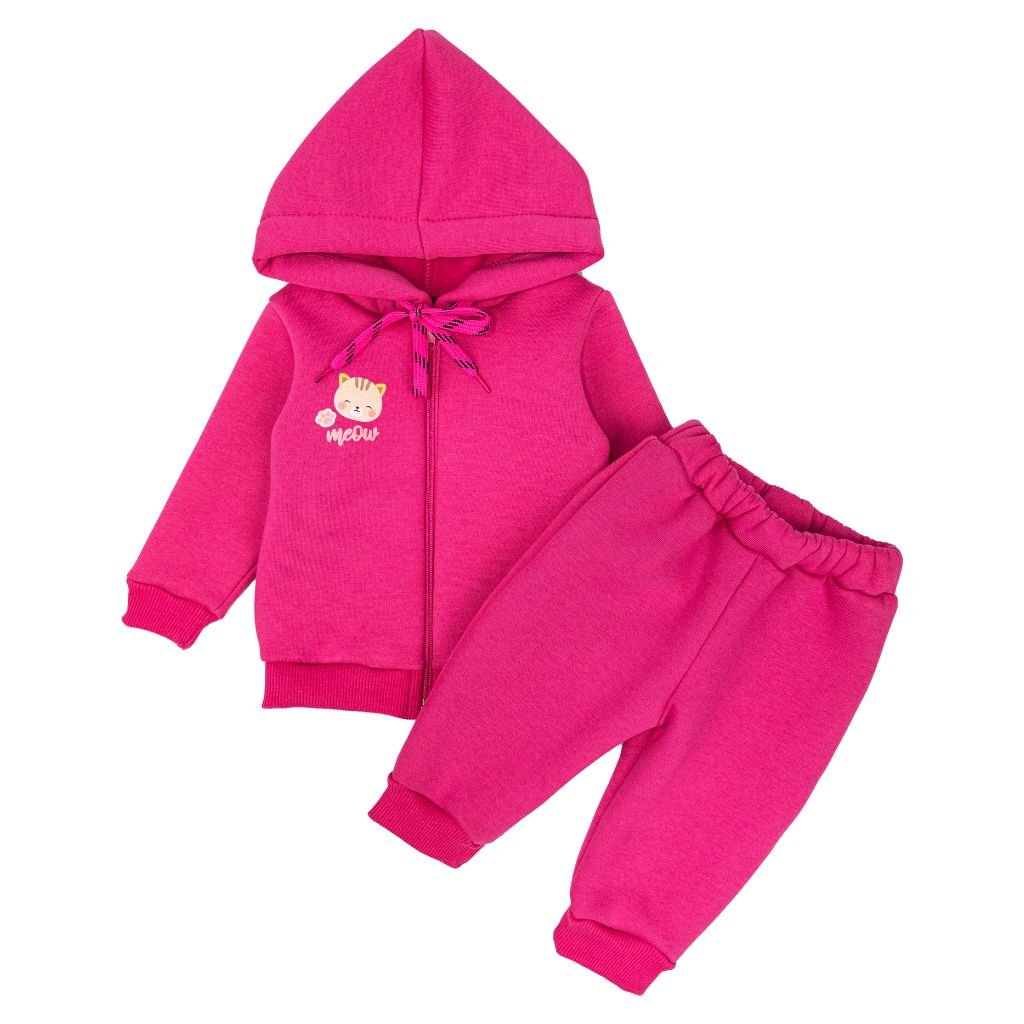 Детские комплекты кофточек и штанишек - удобная и многофункциональная одежда, которая нужна абсолютно каждому ребёнку. Представленный малиновый комплект с рисунком котика состоит из кофты на молнии и штанишек. Все изделия пошиты из качественного полотна - трехнитки с начесным утеплением. Материал достаточно плотный и тёплый, по этому в таком костюмчике Вашему карапузу будет невероятно комфортно. На кофте есть небольшая покраска, а также присутвует капюшон со шнурочком. Штанишки выполнены на мягкой резинке. Будем с нетерпением ждать Ваш заказ в нашем интернет-магазине!