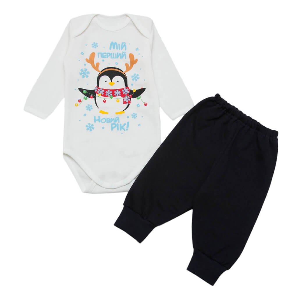 Представляем Вам невероятно красивый и тёплый детский комплект. Состоит из бодика белого цвета с принтом пингвина и штанишек темно-синего цвета. Комплект изготовлен из хлопчатобумажного полотна — начёс. Бодик снизу застегивается на кнопки. Горловина сделана — лодочкой. Впереди размещена красивая покраска на новогоднюю тематику. Штанишки, по поясу, на эластичной резинке. По низу изделия — манжеты из стрейчевого полотна. Скорее подберите понравившуюся расцветку и нужный размер для своего ребёнка и закажите на нашем сайте.