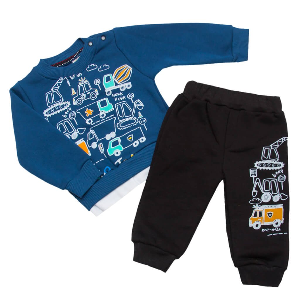 Спешим порадовать Вас невероятными новинками в разделе детской одежды в нашем интернет-магазине ТМ Арлекин! Комплекты кофточек и штанишек всё больше и больше набирают популярность среди малышей. Изделия представленной модели комплекта для мальчика пошиты из высококачественной ткани - трёхнитка. Такое полотно достаточно плотное и отлично подойдёт для демисезонного периода. На кофте возле горловины расположены две кнопочки. Рисунок спереди кофты выполнен в таком же стиле, как и принт на штанишках. Такой комплект выглядит невероятно стильно и современно.