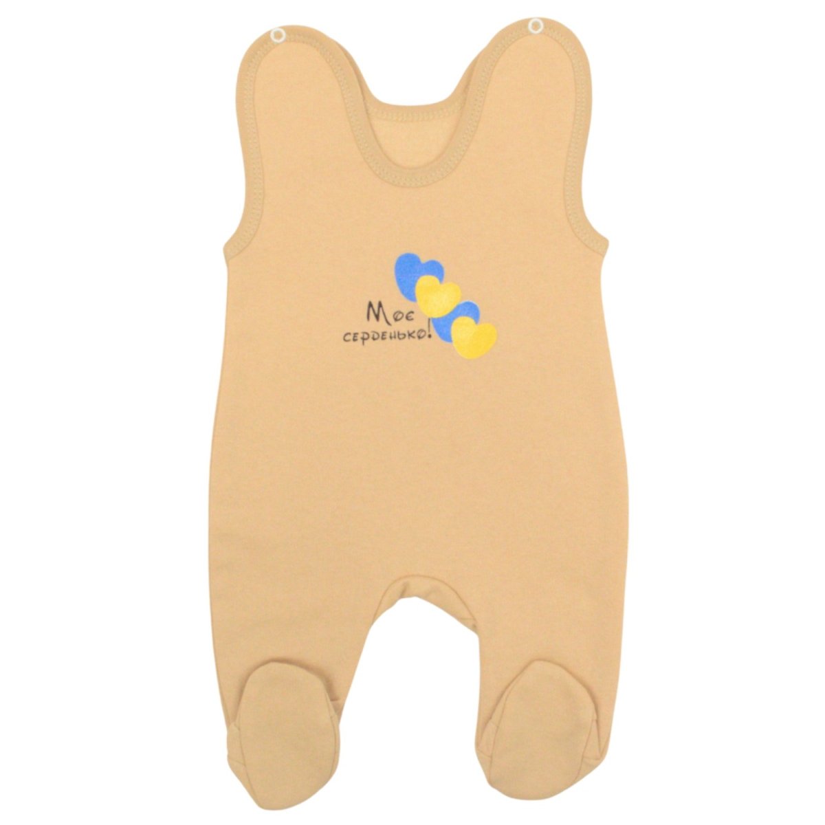 Трудно представить ребёнка без нескольких милых ползунков в своём гардеробе. Ползунки - одна из самых удобных и необходимых одёжек для малышей. Это настоящая выручалочка для мамочек, когда нужно быстро и легко одеть своего карапуза. Ножки у представленной модели ползунков закрыты, а верх выполнен в виде майки. На плечиках присутствуют кнопочки. Изделие пошито из мягкого и качественного начесного полотна, бежевого цвета, которое нежно окутает Вашего малыша невероятным теплом и комфортом. На передней части комбинезона разместилась милая покраска Моє серденько.