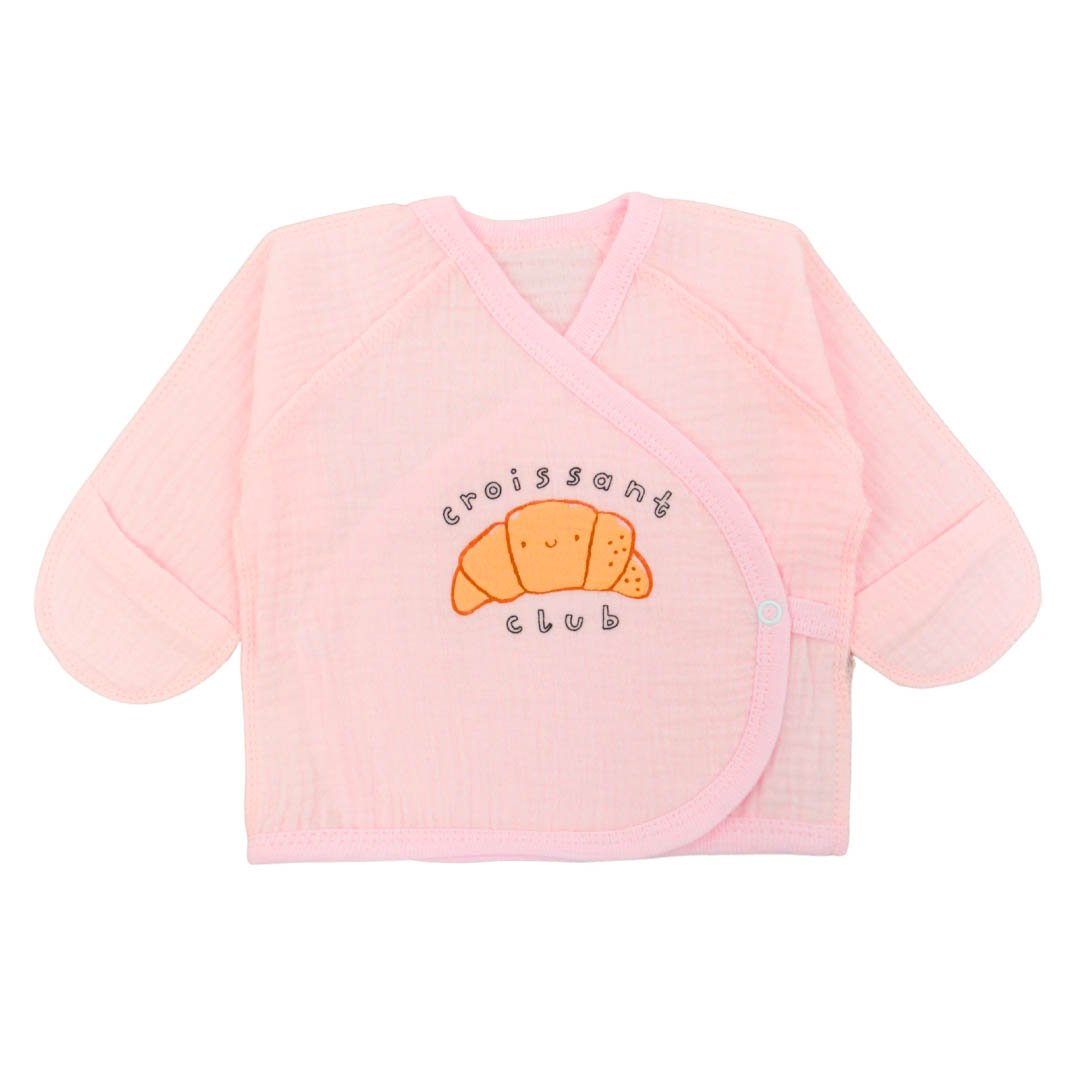 Когда хочется, чтобы малышу было максимально комфортно с первых дней, стоит выбирать продуманные и мягкие вещи. Эта розовая распашонка с принтом круасанчика выполнена из лёгкого муслина, который хорошо пропускает воздух и приятен к коже. Удобная модель на запах фиксируется кнопками, благодаря чему её легко надевать. Рукавчики с закрытыми ручками можно при необходимости открыть. Спереди аккуратный принт, который добавляет изделию милый акцент.