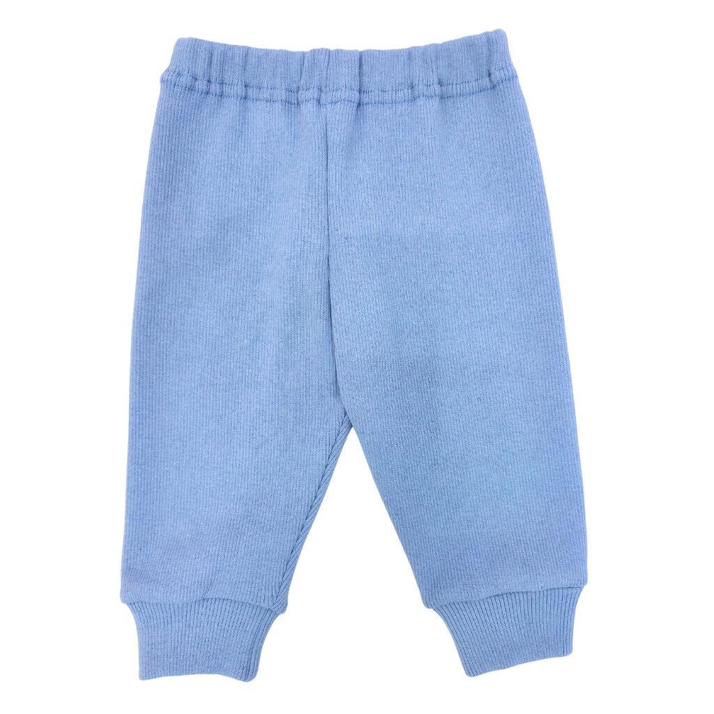 Представляем вашему вниманию детские штанишки голубого цвета выполненные в классическом стиле. Подходят как для мальчика, так и для девочки. Прямые штанины с манжетами, на поясе тоненькая мягкая резинка – плотно сидят и не жмут. Изготовлены из высококачественной ткани – рубчик, который на девяносто четыре процента состоит из отличного хлопка и на шесть процентов из лайкры. Не деформируются, после стирки принимают свой прежний вид. Ваш малыш будет чувствовать в них себя комфортно и уверенно. Приятной носки!