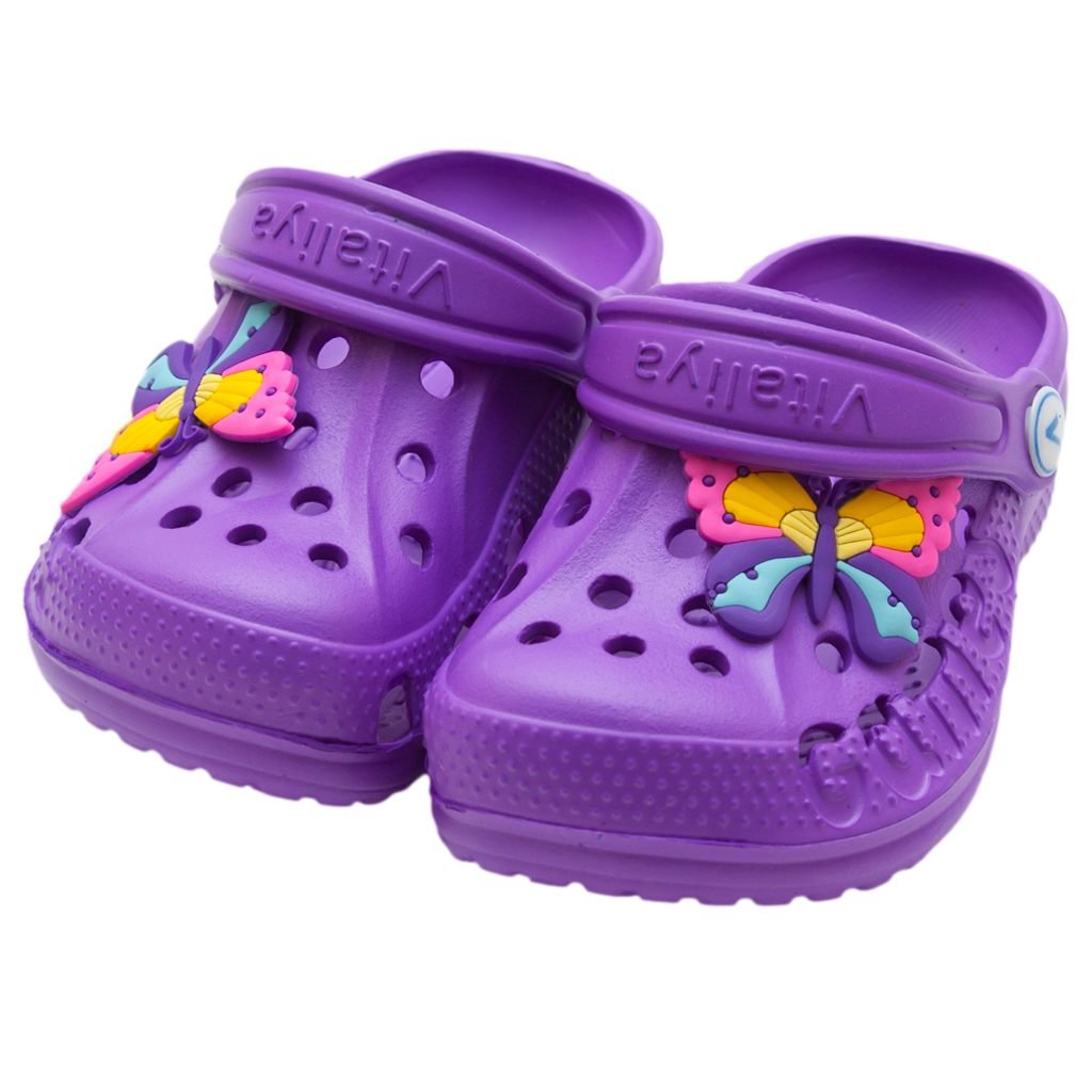 Шлёпки-кроксы для девочки Модель 20210002 Фиолетовые с бабочкой