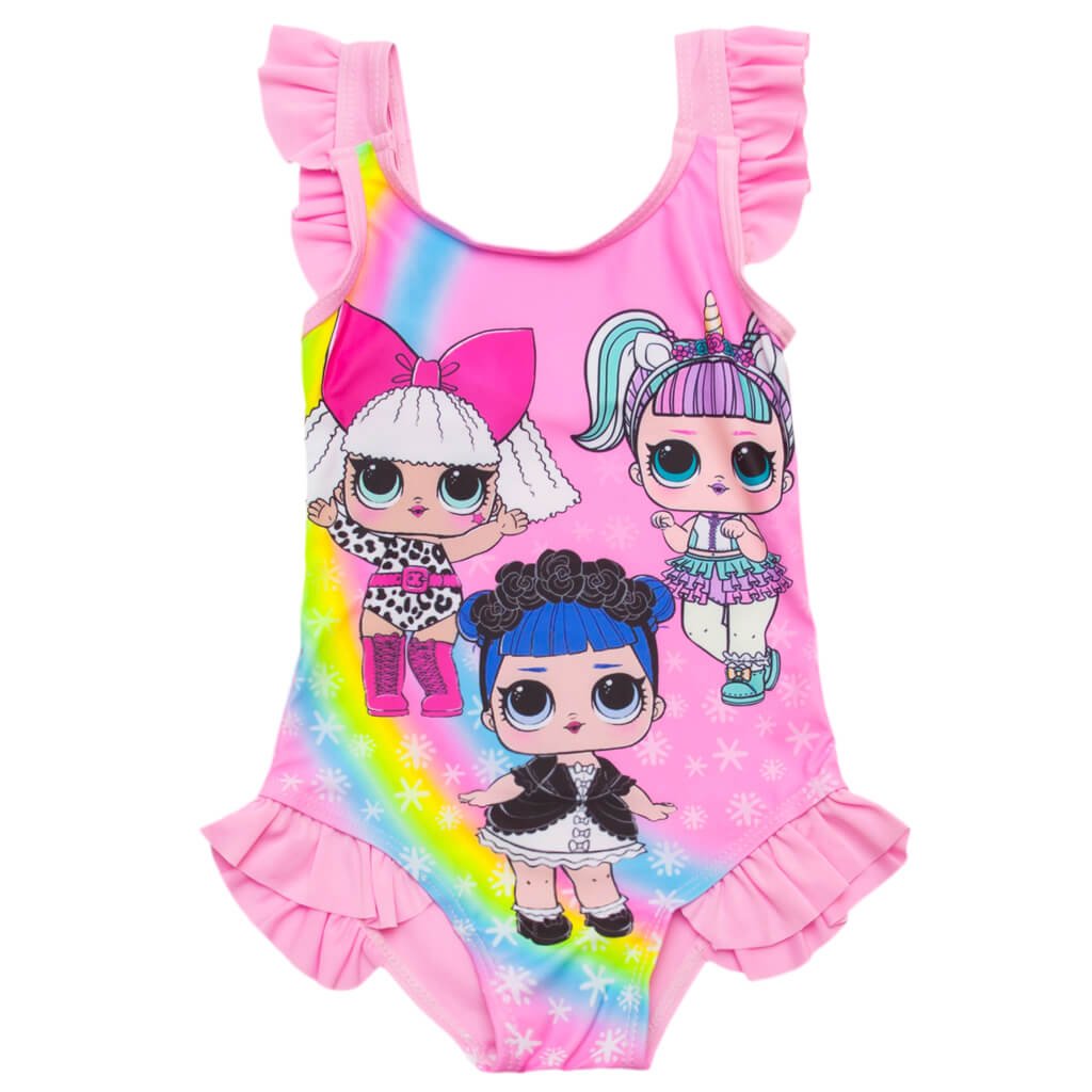Купальников много не бывает, поэтому в гардеробе Вашей принцессы обязательно должно появиться несколько новых купальников от ТМ "Арлекин"! Данный сдельный купальник для девочки точно понравится ребёнку, ведь он имеет принт мультяшных кукол LOL, которые так нравятся девочкам. Яркий купальник розового оттенка на солнце будет смотреться еще красочнее! Сверху на бретельках, а также на проймах для ножек, пришиты рюши. Пляжный купальник с рюшами - что может быть ещё более милым и девчачьим? Изделие превосходно тянется, при этом, отлично сохраняет первоначальную форму.