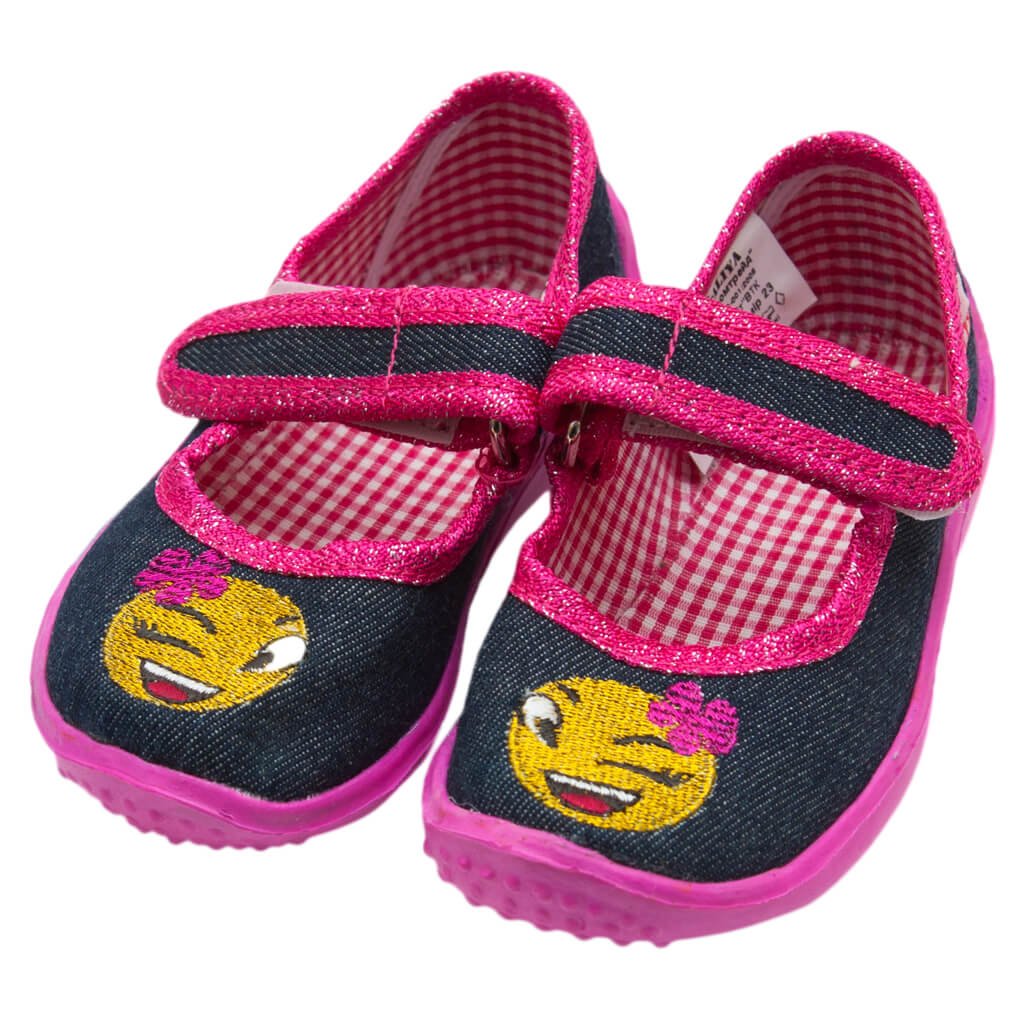 Тапочки для девочки Модель 20210007 Джинсовые Смайлик