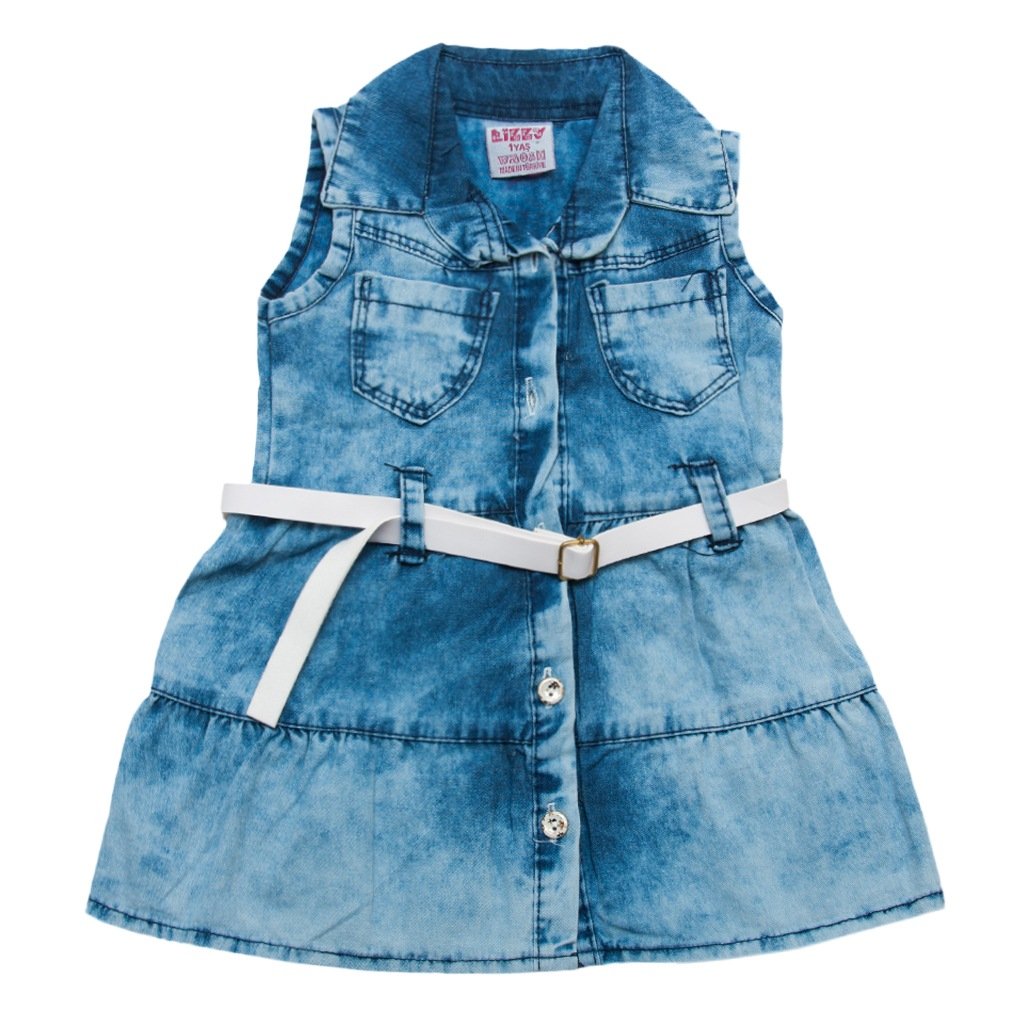 Джинс - это всегда будет актуально и практично, и у каждой модницы, даже самой маленькой, необходимо иметь в гардеробе несколько джинсовых вещичек. Платье изготовлено из высококачественного джинсового полотна, данный материал очень приятный на ощупь и не сильно плотный, поэтому в нём будет комфортно и удобно. Верх платья выполнен в виде майки, то есть без рукавов. Застёгивается данное изделие на пуговки спереди. Как украшение выступают кармашки спереди и миленький пояс, который идёт в комплекте. Платье будет смотреться невероятно стильно на Вашей маленькой красотке.