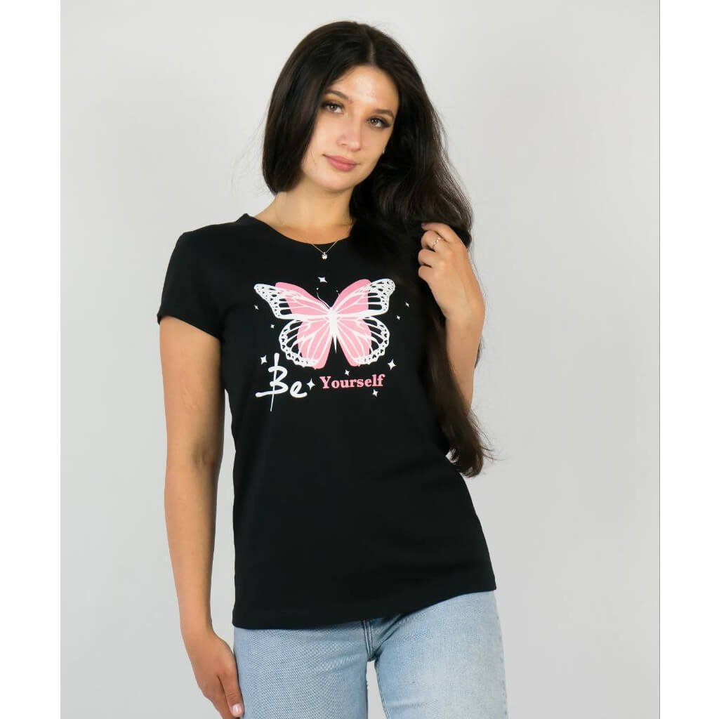 Футболка женская Модель Г-1502Б-022 Черный Бабочка