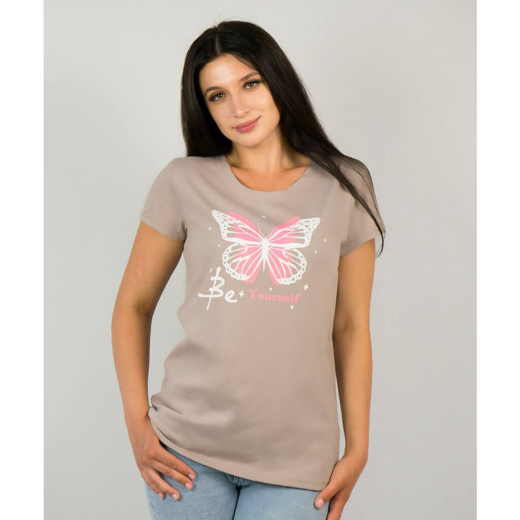 Футболка женская Модель Г-1502Б-022 Мокко Бабочка
