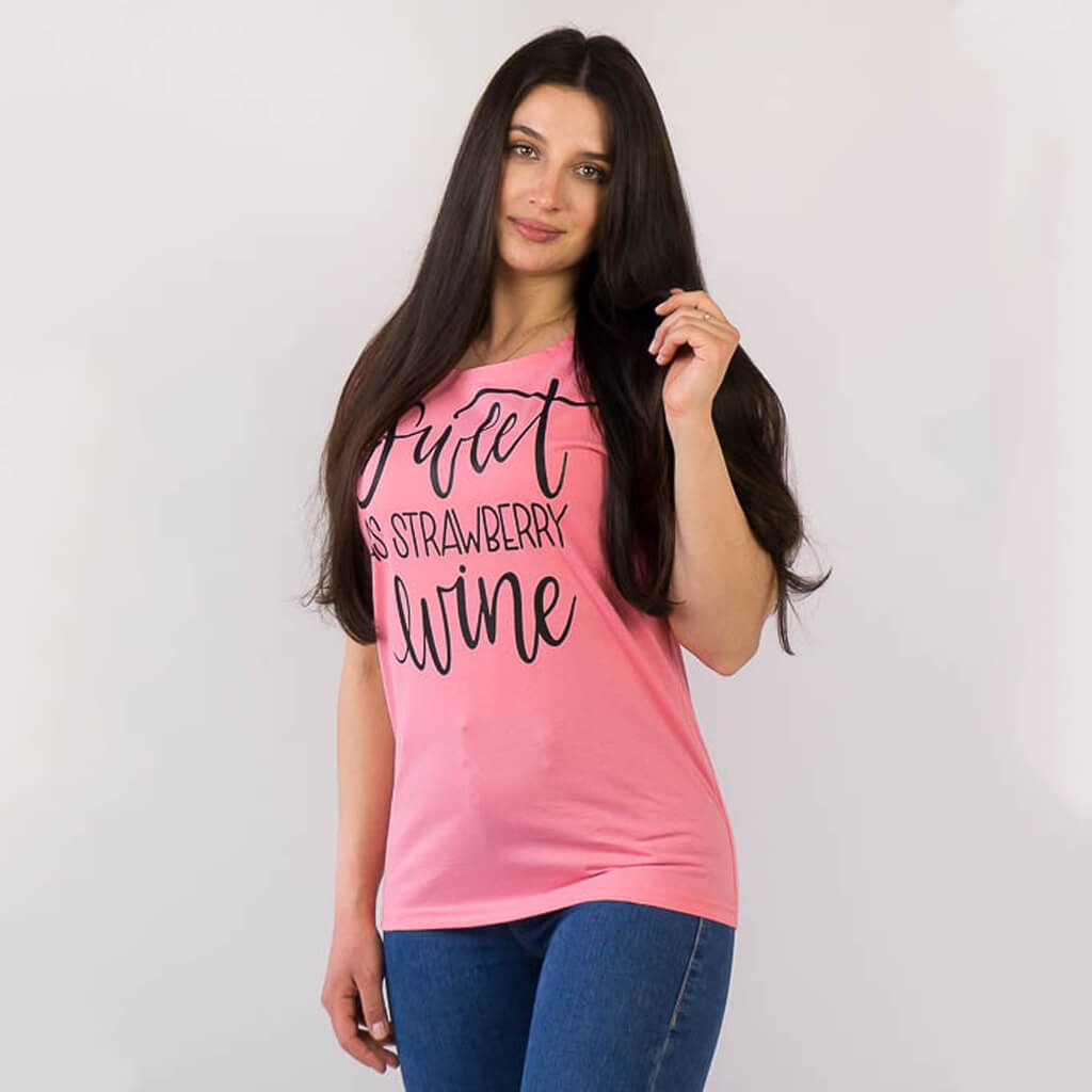 Женская футболка персикового цвета из трикотажного полотна - это отличный выбор для повседневного гардероба. Кулирная ткань славится своей мягкостью и отличной воздухопроницаемостью, что делает её прекрасным выбором для носки в любое время года. В составе такого полотна используется 100% хлопок, что гарантирует комфорт и гипоаллергенность изделия. Футболка имеет классический крой, который обеспечивает свободную посадку и не сковывает движений. Данная модель легко комбинируется с другими элементами гардероба. Футболка украшена стильным принтом в виде надписи на передней стороне.