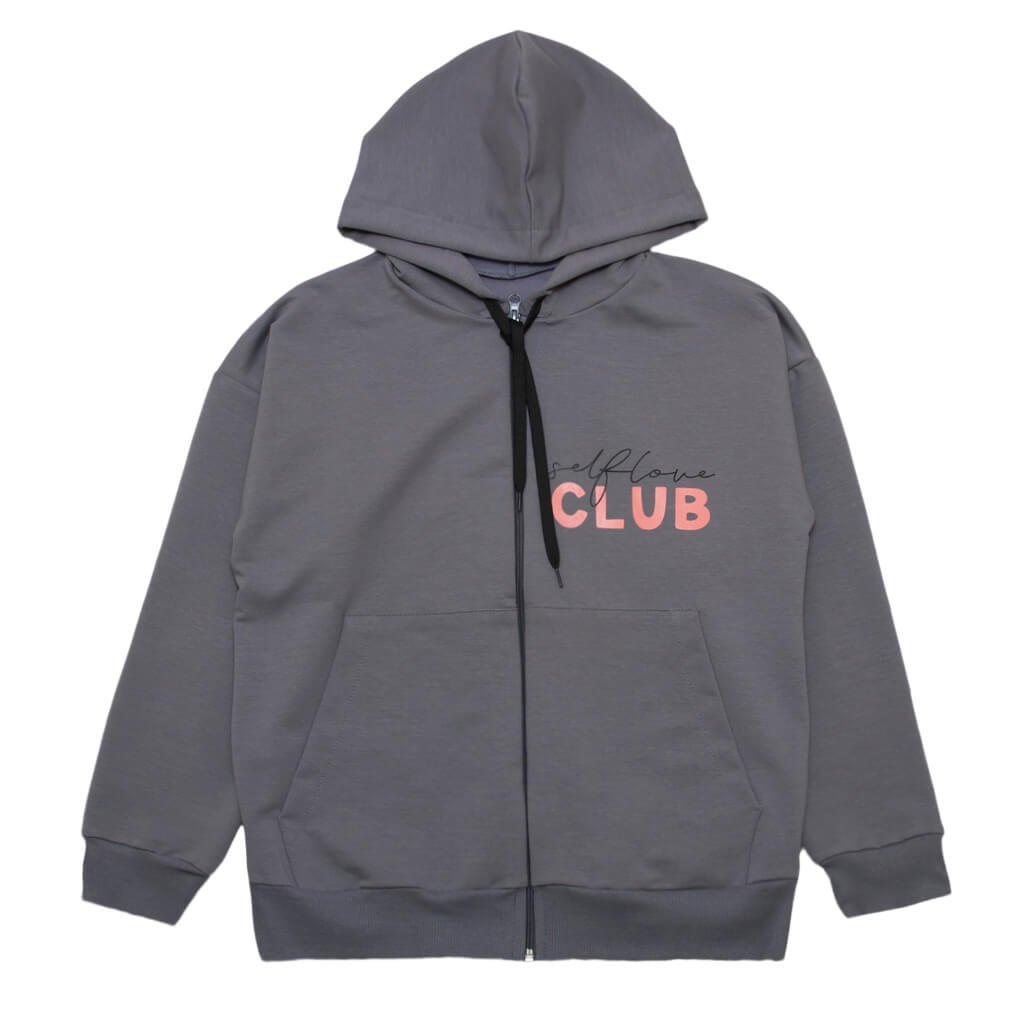 Женская кофта серого цвета с принтом CLUB из полотна двухнитка - это сочетание стиля, удобства и практичности, которая идеально подходит для повседневной носки в любое время года. Модель выполнена с капюшоном и застежкой-молнией, что делает её максимально функциональной. Небольшая покраска в виде надписи на передней стороне придает изделию оригинальности. Также изделие оснащено вместительными кармашками. Двухнитка - это прочный и приятный на ощупь материал, который отличается хорошей воздухопроницаемостью, позволяя коже дышать. Он долговечен, устойчив к износу, а также сохраняет свой первоначальный вид даже после множества стирок.