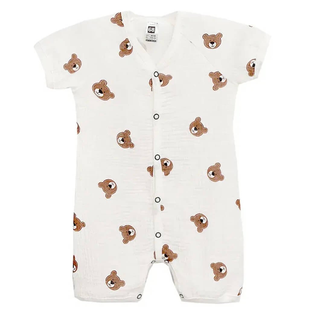 Песочник - идеальный вариант детского комбинезона на тёплое время года. Вашему вниманию представлен новый детский песочник молочного цвета с рисунками мишек, который пошит из высококачественного полотна - муслина. Такой материал достаточно лёгкий и очень приятный на ощупь, благодаря чему изделие обеспечивает нежный контакт с кожей ребенка и позволяет ему свободно двигаться. Также, полотно муслин легко стирается и быстро сохнет. Песочник дополнен удобными кнопками, расположенными по всей длине, что облегчает его надевание и снятие, а также гарантирует отличную посадку.