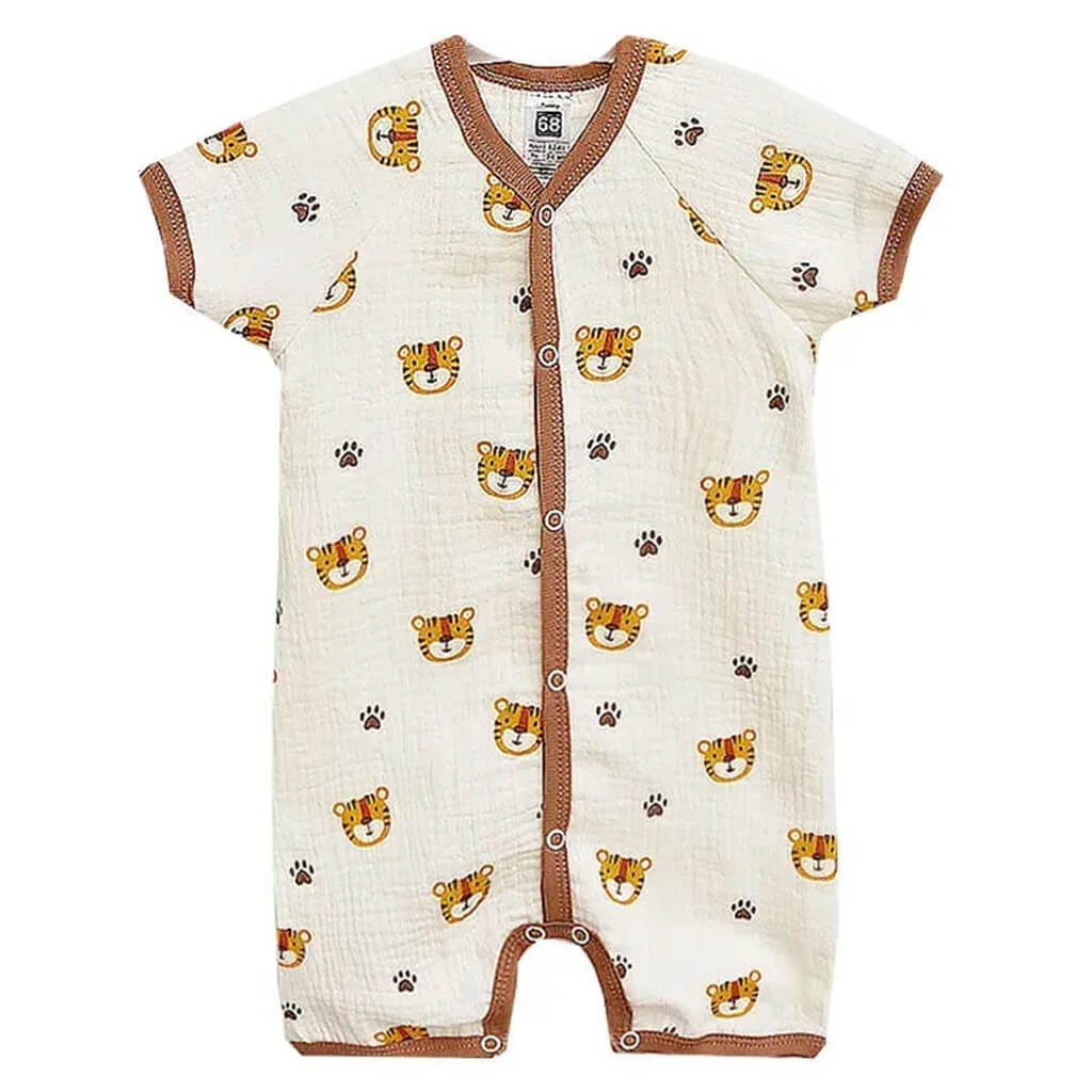 Песочник - идеальный вариант детского комбинезона на тёплое время года. Вашему вниманию представлен новый детский песочник молочного цвета с рисунками тигренка, который пошит из высококачественного полотна - муслина. Такой материал достаточно лёгкий и очень приятный на ощупь, благодаря чему изделие обеспечивает нежный контакт с кожей ребенка и позволяет ему свободно двигаться. Также, полотно муслин легко стирается и быстро сохнет. Песочник дополнен удобными кнопками, расположенными по всей длине, что облегчает его надевание и снятие, а также гарантирует отличную посадку.