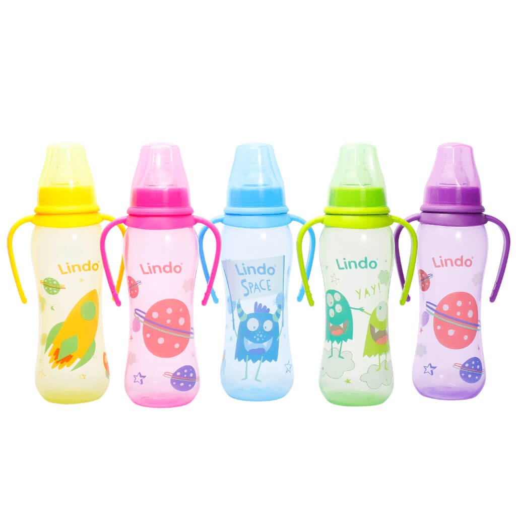 Пляшка для годування з силіконовою соскою і зручними ручками з боків, неодмінно приверне увагу й батьків.Об'єм 250мл. Вік застосування від 3 місяців. Присутній яскравий декор, що неодмінно сподобається вашому малюкові. Завдяки бічним ручкам на пляшці, малюк незабаром навчиться і сам тримати її, чим буде радувати батьків. Всі складові частини знімні що дуже зручно у використанні товару. Пляшка має властивості ударостійкості і термостійкості (до 130 ° С). З появою малюка, батьки неодмінно повинні придбати таку пляшку.