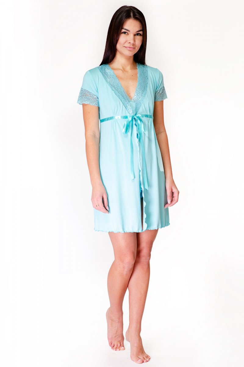 Халат - дуже зручний одяг і є незамінною частиною гардеробу кожної матусі. У нашому інтернет-магазині Ви зможете знайти кілька моделей жіночий халатів прекрасної якості. Дана модель виготовлена з легкої і якісної віскози. Такий халат буде відмінним варіантом домашнього одягу в теплий період. Красиві ажурні вставки зверху і на рукавах надають представленому халату неймовірно красивий вид. Зав'язується на мотузочку посередині. Також на нашому сайті є кілька моделей жіночий піжамний сорочок, які разом з таким халатом будуть виглядати як комплект.