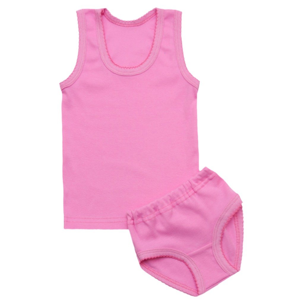 Рожевий комплект для дівчинки в спокійних приємних тонах з рібани - кращий вибір для Вашого малятка.Полотно, з якого виконана ця модель – рібана. Воно ідеально підходить для натільних дитячих речей, дуже приємне до тіла і має високу ступінь зношуваності. Таке полотно на 100% складається з бавовни і прослужить вам дуже довго, а головне,щро це полотно не викликає алергічних реакцій..  Комплект має прикрасу у вигляді крошети на проймах ручок, ніжок і горловині. Ваша принцеса буде задоволена своєю дитячою білизною. Зручні трусики і стильна майка сподобається вашій капризульці.