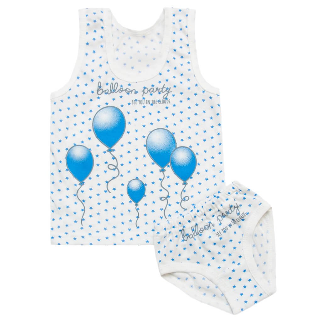 Нова модель дитячого комплекту спідньої білизни вже поповнила асортимент одягу нашого інтернет-магазину «Арлекин» і готова до замовлення на нашому сайті. Представлений комплект виготовлений з якісного та натурального куліра, принт сині зірочки. Таке полотно абсолютно безпечне для шкіри малюка, що дуже важливо. Також дана тканина неймовірно м'яка і приємна на дотик. І на майці, і на трусиках присутнє цікаве фарбування, яке чудово доповнює дизайн комплекту. Всі краї оброблені якісної бейкою. Представлений комплектик неймовірно зручний і милий.