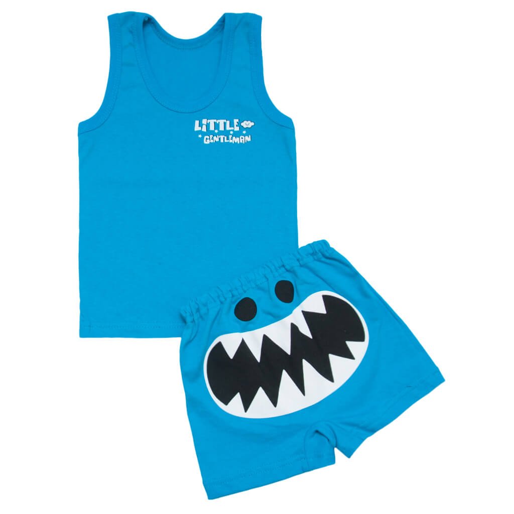 Комплект спідньої білизни для хлопчика виконаний з трикотажного бавовняного полотна - куліра. Складається представлений комплект із маєчки та трусиків бірюзового кольору. Така тканина чудово пропускає повітря та добре вбирає вологу. Майка досить звичайного, але при цьому найзручнішого фасону. Трусики-боксери добре сядуть на Вашому малюку завдяки м'якій резиночці на поясі. Дизайн комплекту унікальний та дуже веселий. Такий комплект для хлопчика точно підніме настрій Вашій дитині. З нашим інтернет-магазином «Арлекин» Ви зможете зробити неймовірний подарунок своєму малюкові!