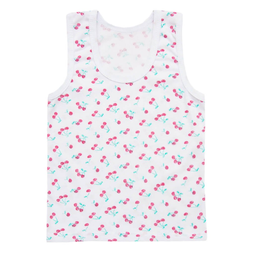 Кулірна майка з простим кроєм, без прикрас і декору. Майка чудово підходить як натільна піддівка, також в ній можна спати або ходити по будинку. Тонке кулірне полотно, білого кольору, з принтом вишеньки, відмінно пропускає повітря, дає можливість тілу дихати. Тканина щільно прилягає до тіла, по цьому під одягом не совається і не викликає незручностей. Майки представлені в різних забарвленнях дівчат, ви можете придбати собі потрібний колір на будь-який смак. ТМ Арлекін надає різноманітну продукцію.
