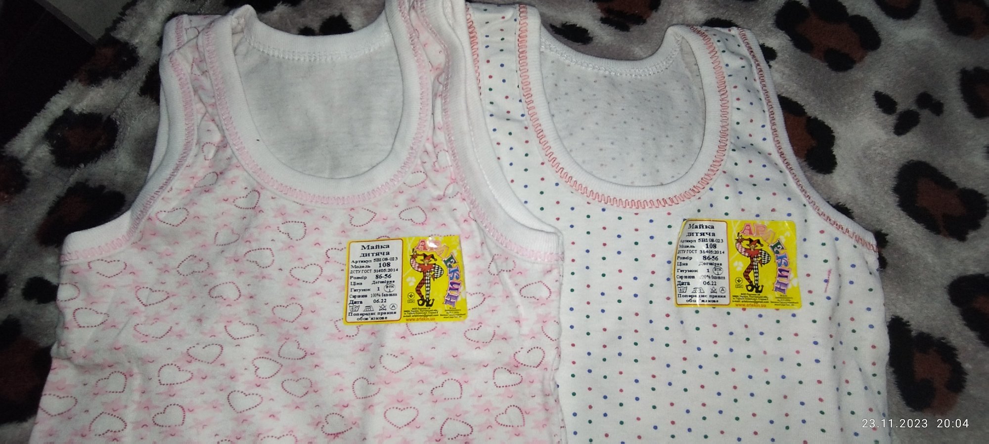 Рисунок с сердцами отличается, а так хорошие маечки. Длина майки 36 см на размер 56