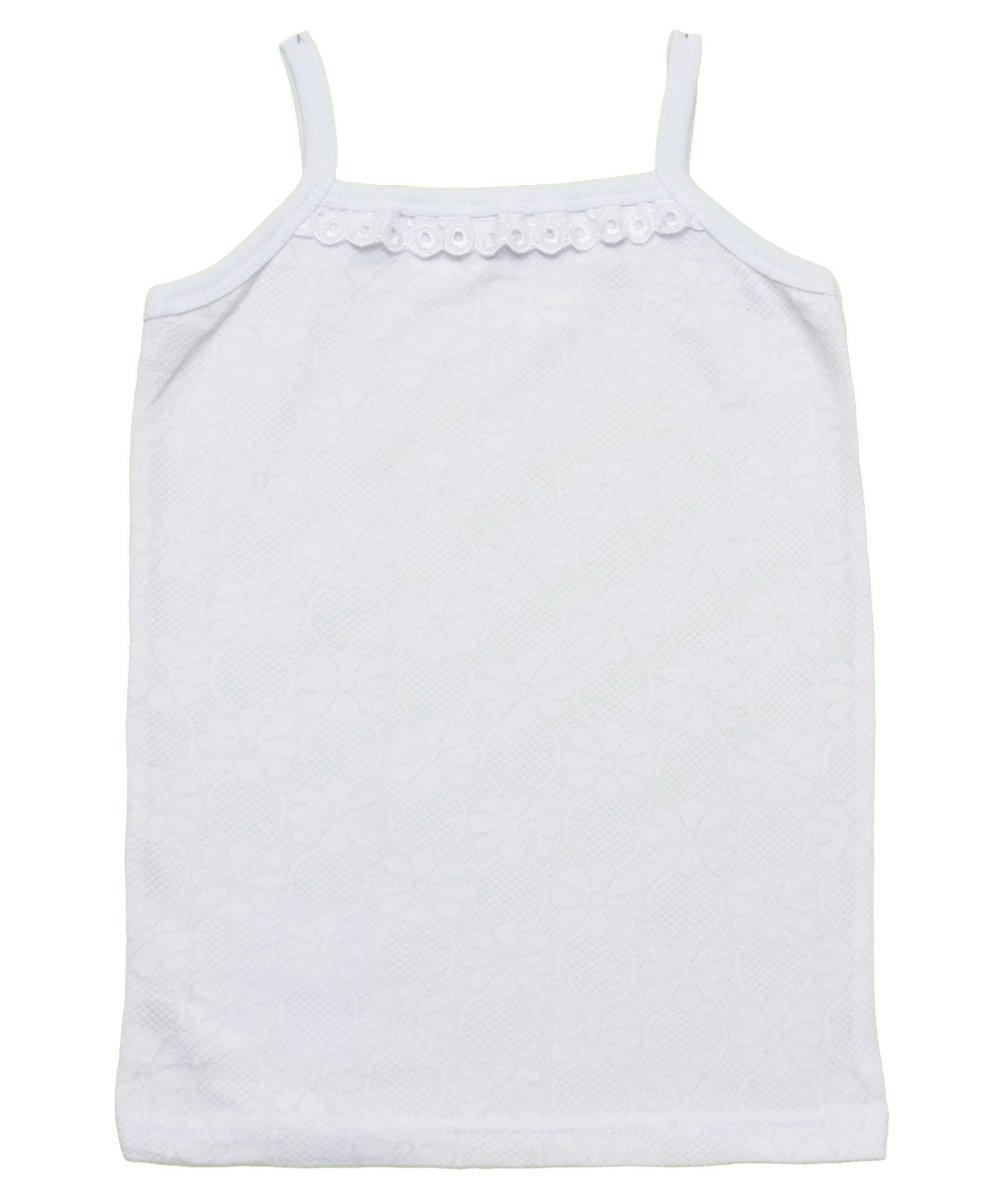 Топ-майка для маленьких дівчаток. Біла однотонна майка - незамінна річ в гардеробі маленької принцеси. Білий топік завжди підійде під будь-який одяг малятка: сукня, кофта, светр. У цій майці присутні елементи мережива на верхній частині грудної клітки. Майка зроблена з 90% бавовни, пропускає повітря і тіло вашого малятка дихатиме та почуватиме себе комфортно. ТМ Арлекін робить якісну продукцію для своїх клієнтів.