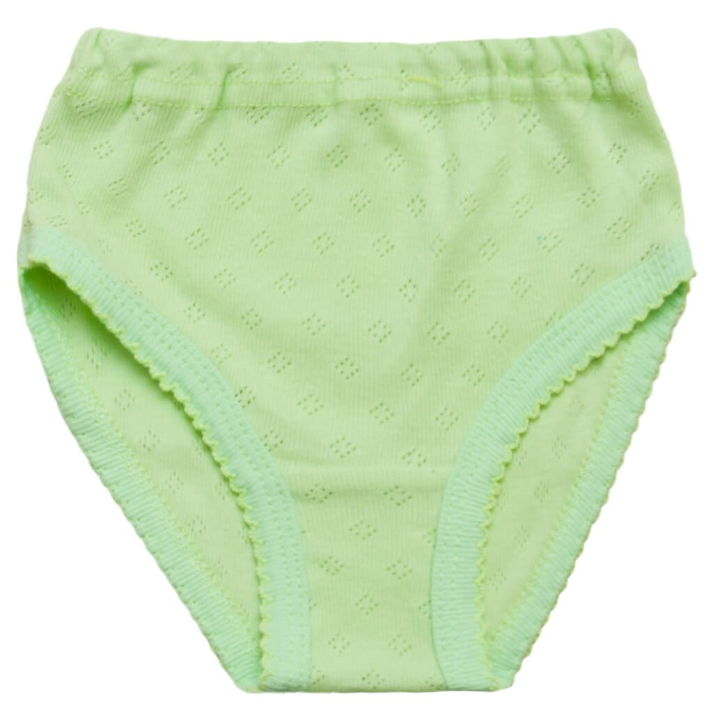 Обираючи дитячі трусики для вашої дочки в нашому інтернет магазині передусім ви придбаваєте якісну і комфортну дитячу білизну. Ця модель трусиків чудово підходить для літнього сезону, оскільки зшита вона із спеціального полотна рібана-жакард. Це полотно має сітчасту структуру, що дає можливість ще більше повітрю циркулювати і провітрювати шкіру. Структура полотна відмінно поєднується з крошетою на проймі ніжок і надає трусикам ще більшої легкості. Склад полотна 100% бавовна.