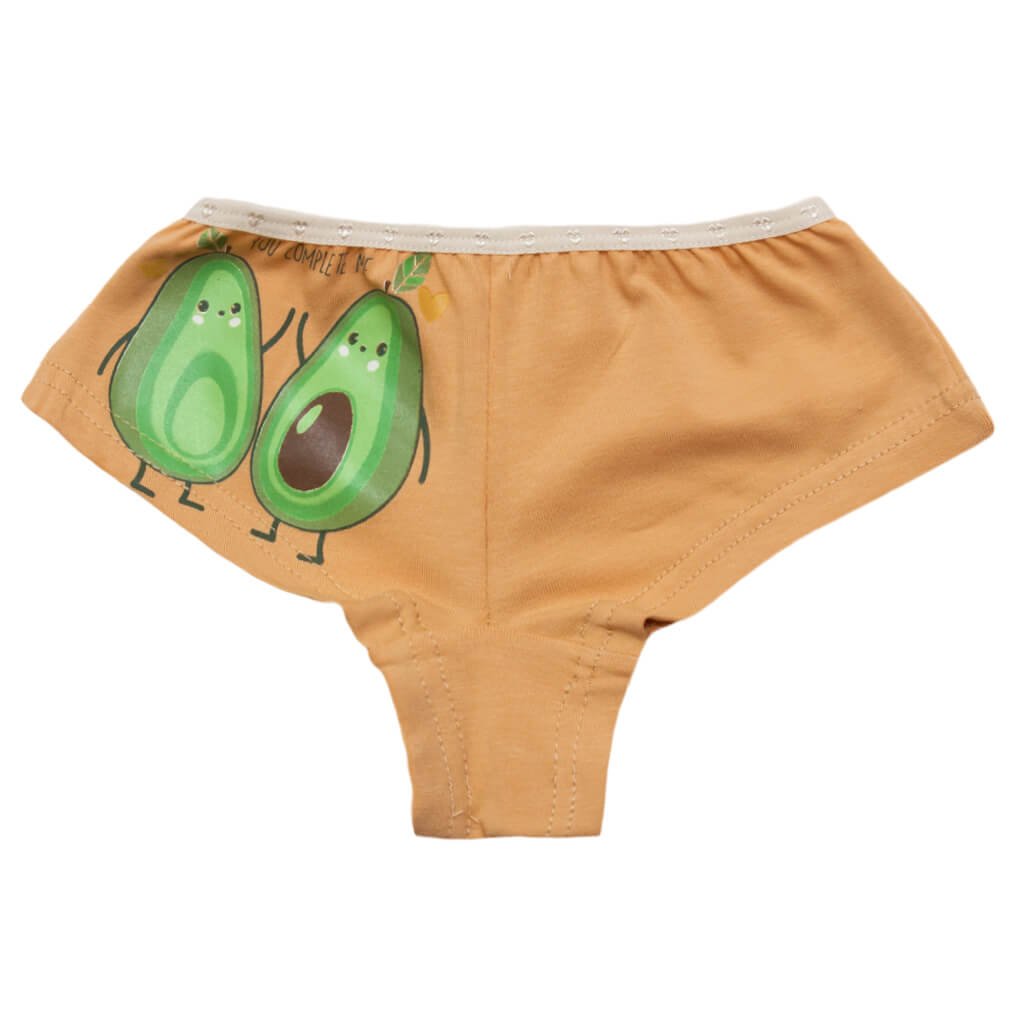 Трусики для дівчинки пошиті з якісного трикотажного полотна - стрейч-куліра бежевого кольору. Даний матеріал складається з бавовни з невеликим додаванням еластану, що робить дану модель досить еластичною та дуже зручною в носінні. На поясі трусиків розташована м'яка резиночка. Виріб доповнено красивим малюнком авокадо, який точно не залишиться без уваги Вашої маленької красуні. Трусики легко перуться і швидко сохнуть, також не втрачають свій колір після численних прань. Такі трусики стануть незамінною річчю в гардеробі Вашої крихітки.
