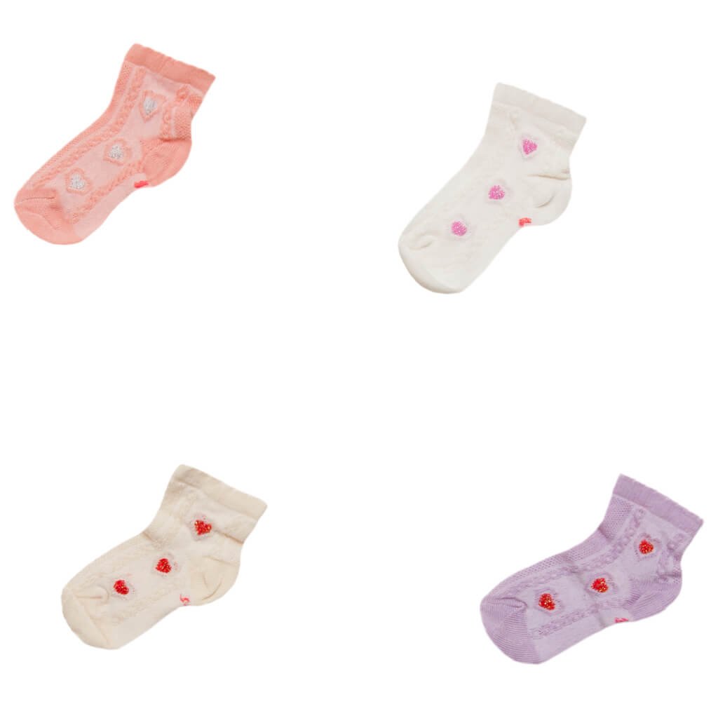 У гардеробі кожного малюка повинні бути шкарпетки, які виготовлені тільки з високоякісних і натуральних тканин. У нашому інтернет-магазині «Арлекин» Ви зможете придбати дитячі бавовняні шкарпетки. Представлена модель шкарпеток для дівчинки виготовлена з сіткового полотна, яке абсолютно безпечне для шкіри малюка. Дані носочки легко пропускають повітря, що дозволить їх носити в теплі дні. Також шкарпетки прикрашені різними красивими малюночками. Швидше порадуйте свого малюка обновочками з нашого інтернет-магазину!