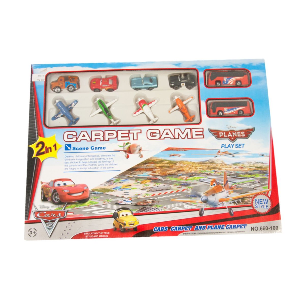 Гра, в якій автомобілі та літаки ділять одну ігрову сцену - звучить як мрія для будь-якої дитини. Яскравий набір «Carpet Game 2 в 1» поєднує в собі машини, автобуси та літаки, натхненні героями популярних мультфільмів. Все це доповнено барвистим ігровим полем, на якому можна влаштовувати гонки, зльоти і посадки, створюючи цілі сюжетні історії. Комплект підходить для дітей від 3 років і допомагає розвивати дрібну моторику, фантазію і комунікативні навички. Відмінний вибір для веселих і пізнавальних ігор вдома.