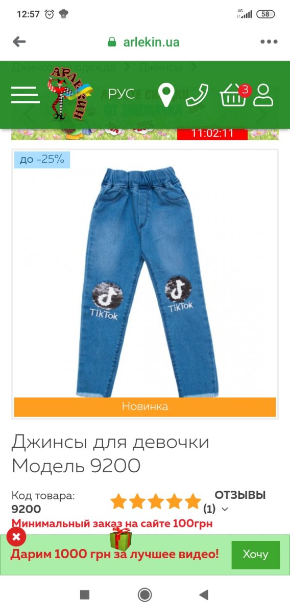 Мінімальне замовлення на сайті 100грн