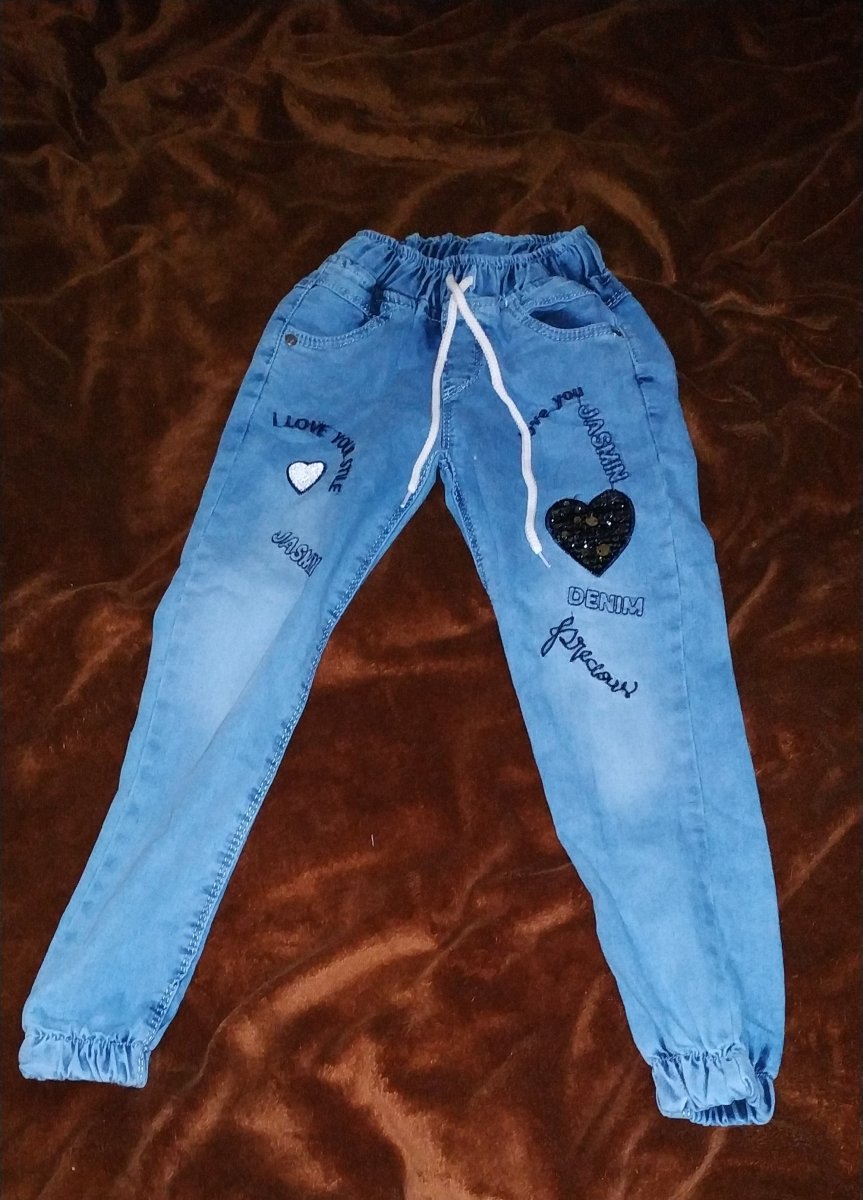 Блакитні джинси на резинці для дівчинки виглядають дуже стильно і красиво. Дитячі джинси джоггери - тренд останніх сезонів! Спереду на обох штанинах розташовані вишиті написи і малюнки з паєтками - ці декоративні елементи відмінно доповнюють виріб. По поясу, а також знизу на нозі джинси фіксуються резинкою. При необхідності на поясі джинси можна додатково затягнути шнурком. Джинси - це універсальна річ, яка обов'язково повинна бути в гардеробі у дитини, адже це не тільки стильно, а і дуже зручно та практично. Ви та Ваша дитина залишитесь задоволені такою покупкою!