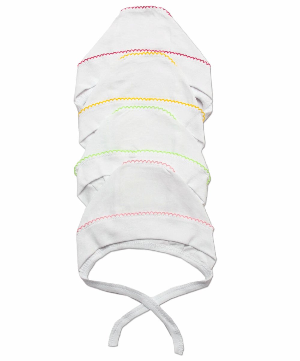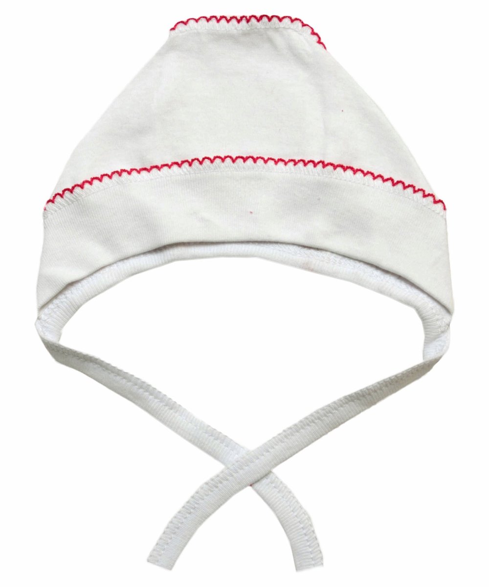 Головний убір для маленьких карапузів є невід'ємною частиною гардеробу. Відмінним різновидом головних уборів для діток є чепчики. Чепчик здатний вберегти голову Вашого малятка від впливу зовнішніх чинників - сонячної або навпаки поганої, вітреної погоди. Ми пропонуємо звернути Вашу увагу на цю модель трикотажного чепчика. Виріб має дуже простий, але і в той же час, красивий і стильний дизайн - біле трикотажне полотно відмінно поєднується з кольоровою крошетою. Такий чепчик Ви зможете комбінувати абсолютно з будь-яким нарядом немовляти. Швидше замовляйте!