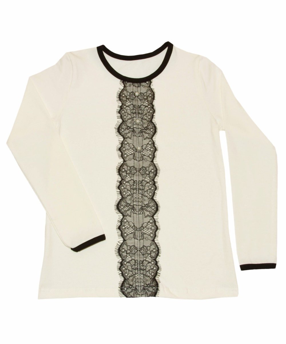 Вже скоро 1 вересня, а це означає що пора готуватися до школи. Шкільна форма представлена і в нашому магазині. Новинка від торгової марки Арлекін - блуза для дівчинки з довгим рукавом. Виконана із стрейч-кулірного полотна в молочному кольорі. Спереду красиве мереживо чорного кольору, на ньому декоративні три перлинні намистини. Краї рукавів і горловина оброблені контрастною бейкою в колір мережива. Трикотажні блузи упевнено увійшли до шкільного гардеробу дівчаток. У них зручно і легко поєднувати з іншим одягом.