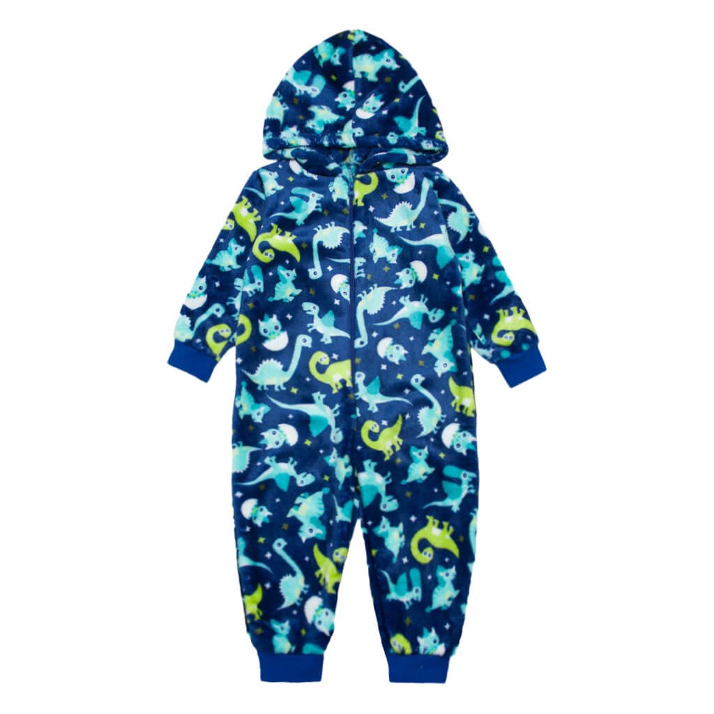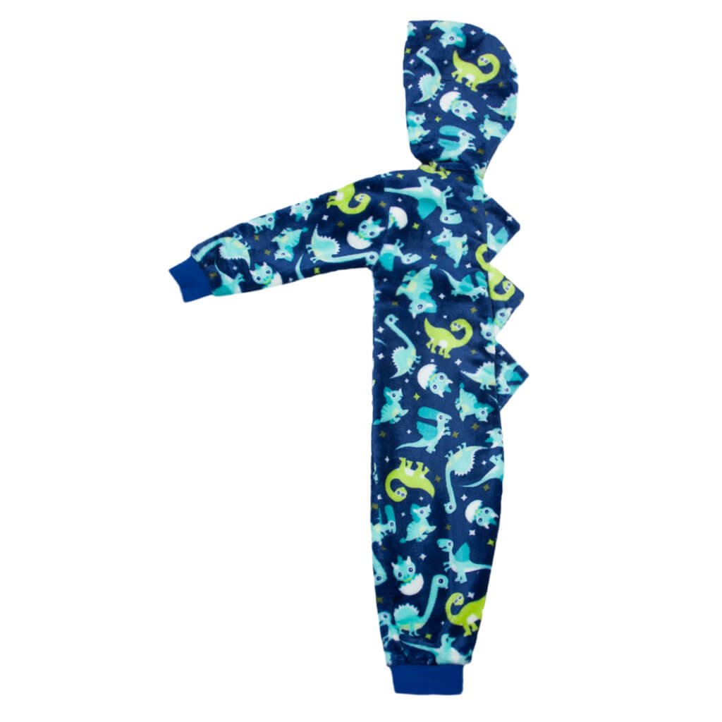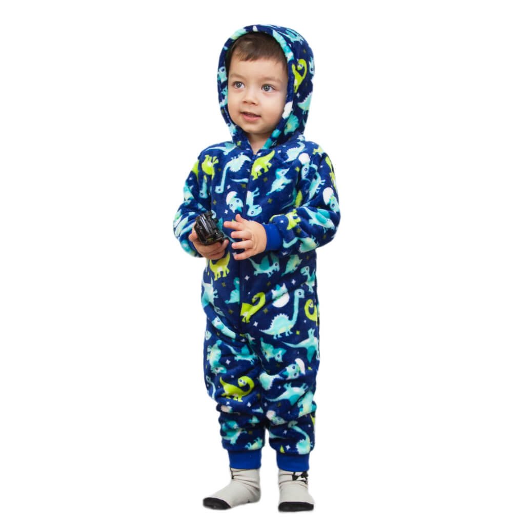 Представлений дитячий кігурумі синього кольору з принтом динозаврів - справжня знахідка для тих, хто шукає поєднання затишку, тепла та цікавого дизайну, що точно сподобається дитині. Пошитий із м'якої та приємної на дотик махри, він ідеально підходить для холодної пори року. Кігурумі застібається спереду на зручну блискавку, що дає змогу дитині швидко та легко одягатися. Еластичні манжети на рукавах і ніжках не тільки утримують тепло, а й гарантують ідеальну посадку, запобігаючи задиранню тканини під час активних ігор або сну. Модель доповнена затишним капюшоном. По всій поверхні полотна розміщені яскраві та кумедні малюнки, які обов'язково привернуть увагу дитини.