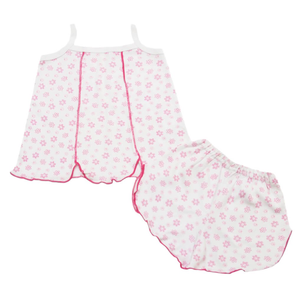 Піжамний комплект для дівчинки пошитий із високоякісного трикотажного матеріалу - рібани. Завдяки такому м'якому та еластичному полотну комплект майки та шортиків подарує Вашій дитині неймовірний комфорт під час сну. Також вироби відмінно зберігатимуть свою форму та високу якість, навіть після численних прань. Майка та шортики виконані вільного крою, щоб нічого не сковувало рухи малюка й не доставляло дискомфорту. На полотні є яскраві та красиві візерунки, які точно оцінить Ваша маленька принцеса!
