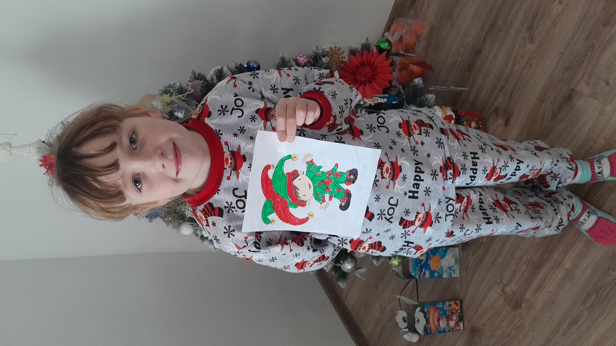 Дитяча піжама сірого кольору з принтом Happy Joy з начісу - це затишок і тепло, які так потрібні в холодні зимові дні та ночі. Виконана з м'якого полотна начіс, піжама подарує дитині комфорт і зігріє в прохолодну пору року. Матеріал добре утримує тепло, приємний на дотик і підходить для ніжної шкіри. Еластичні манжети на рукавах, горловині та штанинах забезпечують надійну посадку. Дизайн піжами натхненний новорічними святами. Піжама представлена в декількох кольорах, що дасть змогу вибрати варіант, який сподобається саме Вашому малюку. Штани на зручній гумці не здавлюють животик, а м'яко обхоплюють талію, забезпечуючи дитині свободу рухів і комфортний відпочинок.