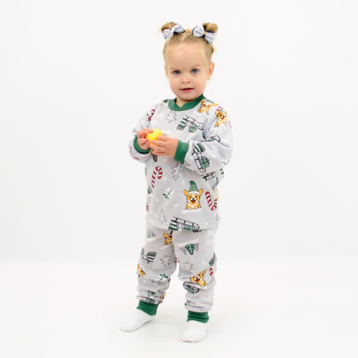 Дитяча піжама сірого кольору з собачкой з начісу - це затишок і тепло, які так потрібні в холодні зимові дні та ночі. Виконана з м'якого полотна начіс, піжама подарує дитині комфорт і зігріє в прохолодну пору року. Матеріал добре утримує тепло, приємний на дотик і підходить для ніжної шкіри. Еластичні манжети на рукавах, горловині та штанинах забезпечують надійну посадку. Дизайн піжами натхненний новорічними святами. Піжама представлена в декількох кольорах, що дасть змогу вибрати варіант, який сподобається саме Вашому малюку. Штани на зручній гумці не здавлюють животик, а м'яко обхоплюють талію, забезпечуючи дитині свободу рухів і комфортний відпочинок.