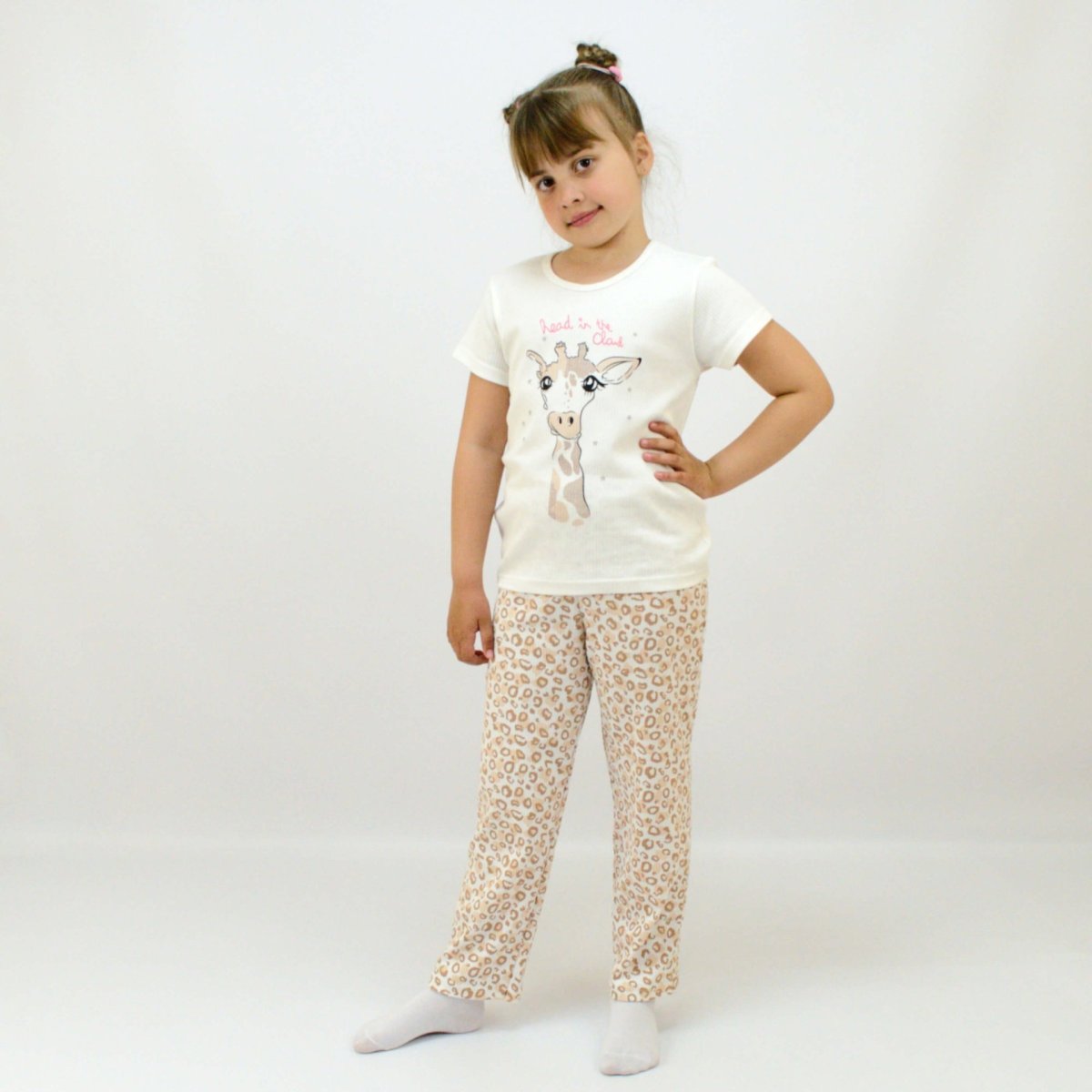 Піжама для дівчинки інтерлок рапорт 377-793 Молочний Жирафа
