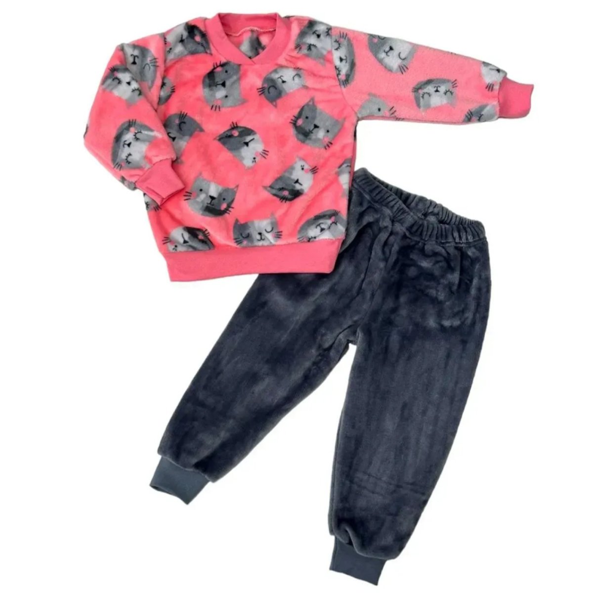 Піжама для дівчинки махра П-0666-573 Рожевий Котики