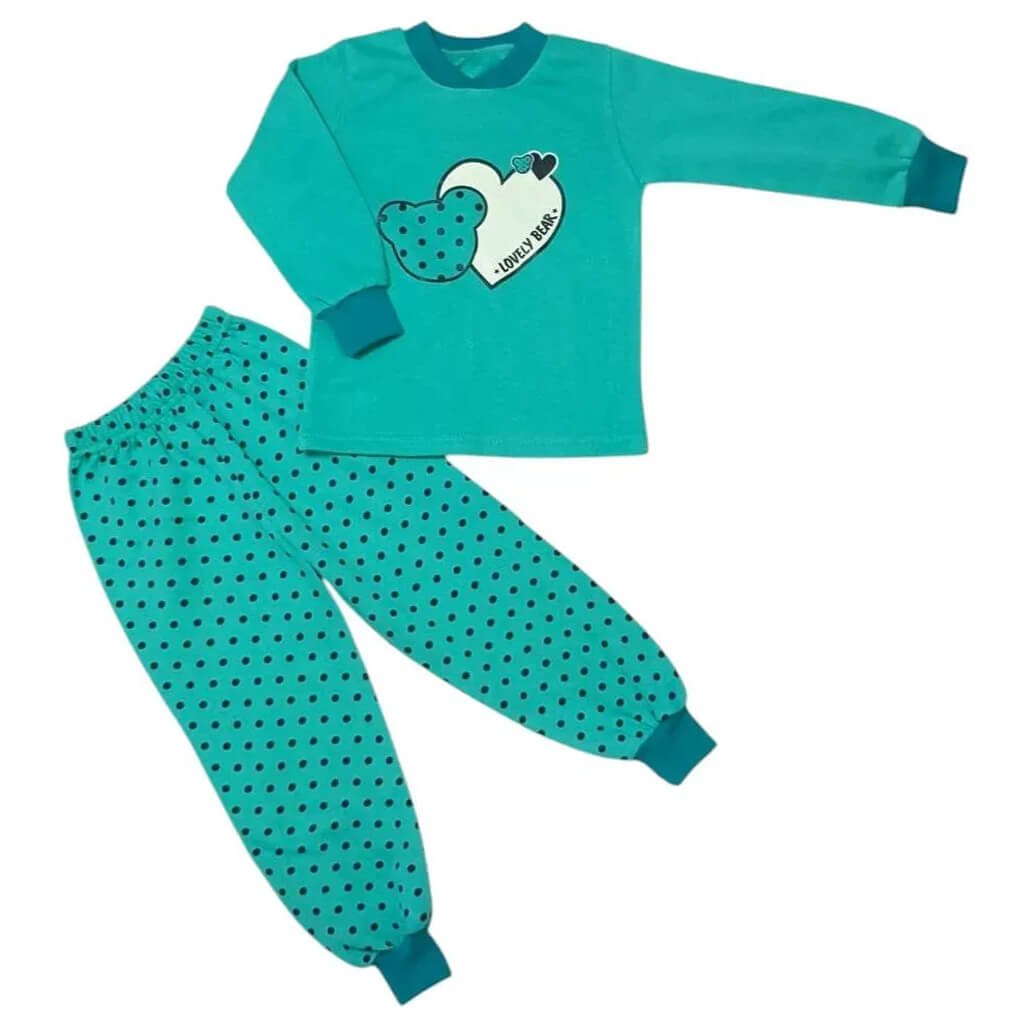 Піжама для дівчинки начіс П-0670-033 Бірюзовий Сердечко