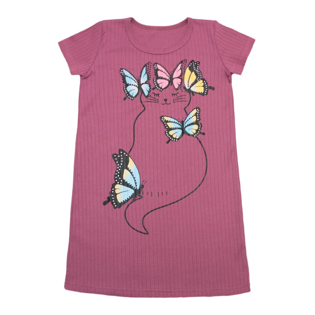 Нічна сорочка для дівчинки інтерлок 365-792 Сливовий Метелики