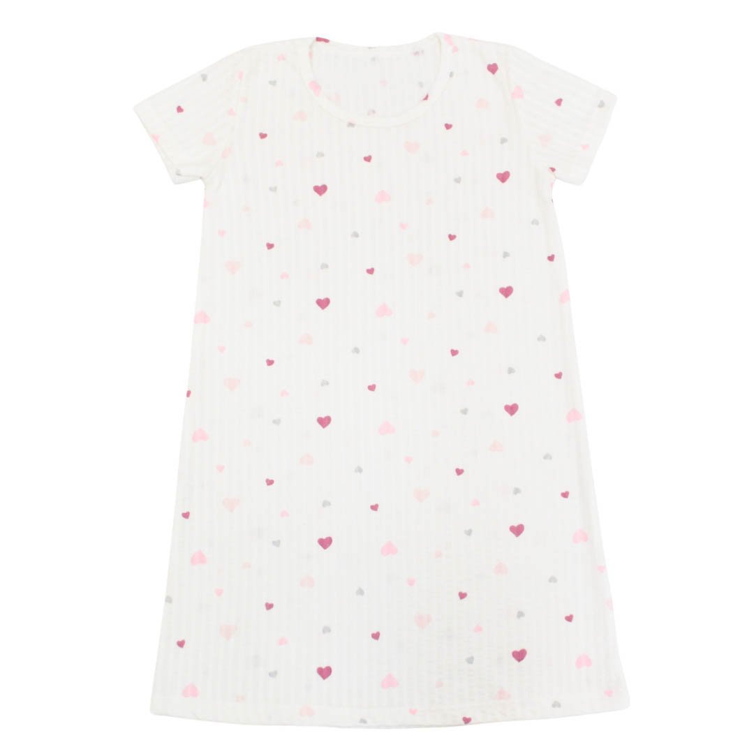 Нічна сорочка для дівчинки інтерлок жакард 366-893 Молочний Сердечки різнокольорові