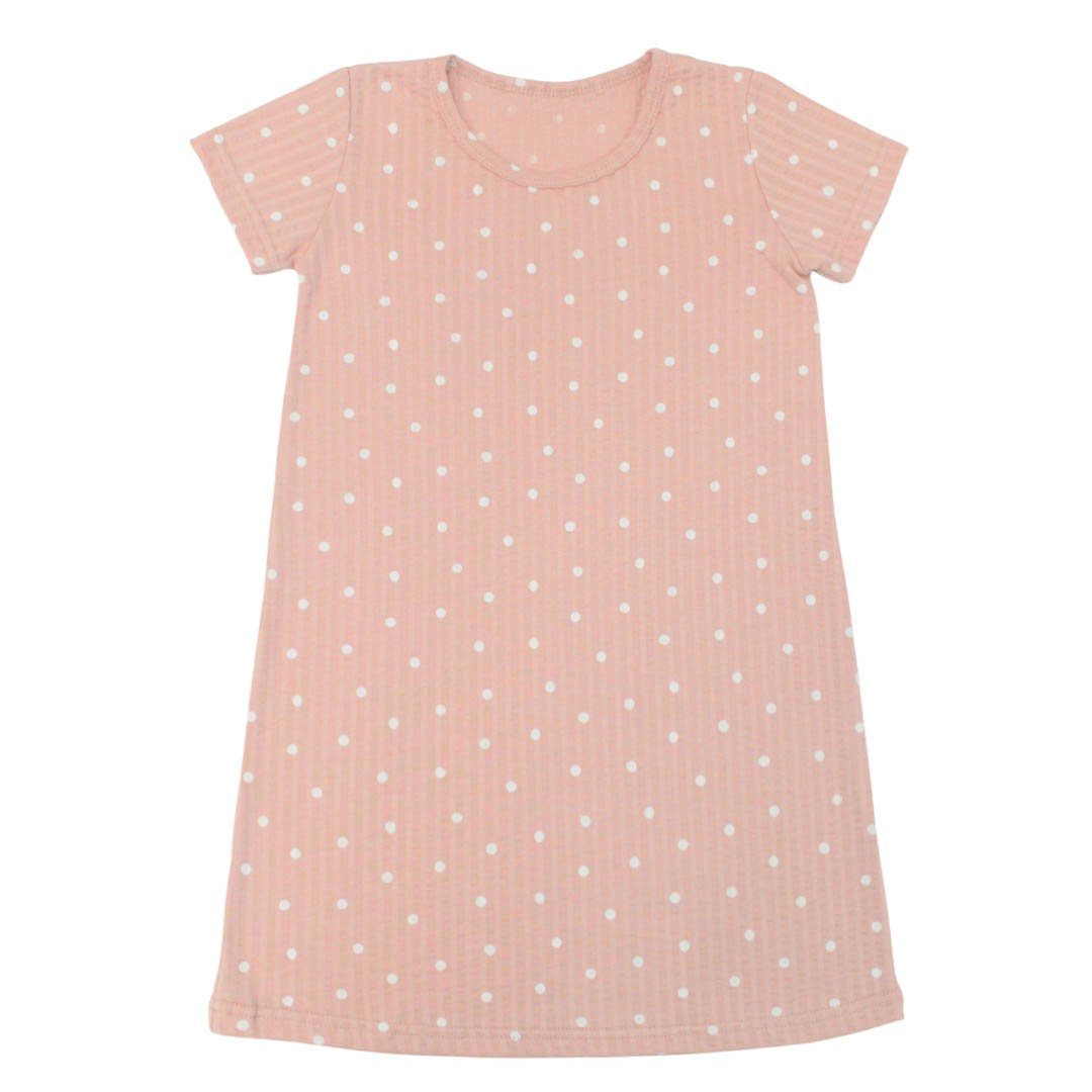 Увечері особливо хочеться, щоб все було м'яким, спокійним і затишним - і дитяча нічна сорочка в цьому відіграє не останню роль. Модель створена для комфортного сну та домашніх вечорів, коли важливо, щоб тканина приємно відчувалася на шкірі і не заважала рухам. Нічна сорочка виконана з жакарду інтерлока кольору пильна троянда з принтом горошок - полотно відрізняється делікатною фактурою, добре тримає форму і при цьому залишається ніжним і еластичним. Вільний крій забезпечує легкість і комфорт: нічна сорочка не сковує, не перекручується уві сні і підходить навіть для дуже активних дітей. Короткий рукав робить модель зручною для теплого сезону.