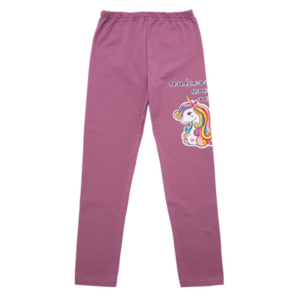 Лосини - та річ у гардеробі, яку точно люблять усі дівчатка. Такий різновид штанів дуже зручний, практичний, а також стильний і красивий. Вашій увазі представлена нова модель дитячих лосин для дівчинки, які виконані з якісного та еластичного стрейч-куліра кольору пильної троянди. Полотно добре тягнеться, і при цьому не розтягується, що робить його ідеальним для повсякденного носіння та активного проведення часу. Лосини доступні до замовлення в декількох однотонних кольорах, а прикрашений виріб милим фарбуванням єдиноріжки на передній стороні.