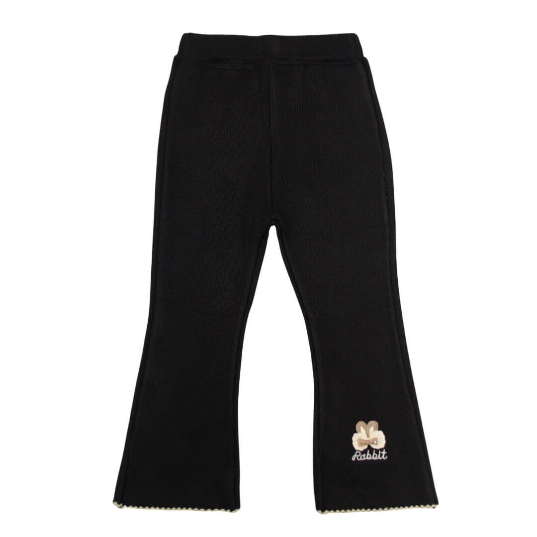 З легким рухом ці дитячі лосини перетворюють звичайний повсякденний образ в стильний наряд. Модель виконана з м'якого рубчика чорного кольору на хутрі - матеріалу, який дарує приємне тепло та підходить для прохолодної осені та зими. Тканина еластична, лосини добре тягнуться і комфортно сидять по фігурі, не сковуючи рухів під час ігор та прогулянок. Однотонний дизайн доповнений акуратним маленьким малюнком знизу, який додає образу ніжності. Пояс виконаний на зручній резинці, що дозволяє лосинам надійно триматися без тиску або дискомфорту. Особливу увагу привертає сучасний крій з легким кльошем.