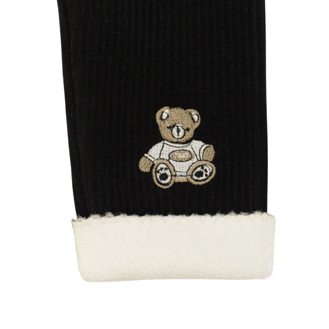 Кожна дівчинка хоче відчувати себе затишно і красиво, навіть у прохолодну погоду, тому без пари стильних лосин точно не обійтися. Дана модель виконана з м'якого трикотажу чорного кольору на хутрі, який прекрасно утримує тепло, не створюючи відчуття тяжкості. Матеріал приємний до тіла, еластичний і дозволяє шкірі дихати, завдяки чому лосини підходять для щоденного носіння, прогулянок й активних ігор. Однотонний дизайн робить модель універсальною - вона легко поєднується з будь-якими светрами, туніками або толстовками. Внизу розташовані невеликі акуратні малюнки. Еластичний пояс забезпечує зручну посадку, не здавлюючи животик і не сповзаючи під час руху.